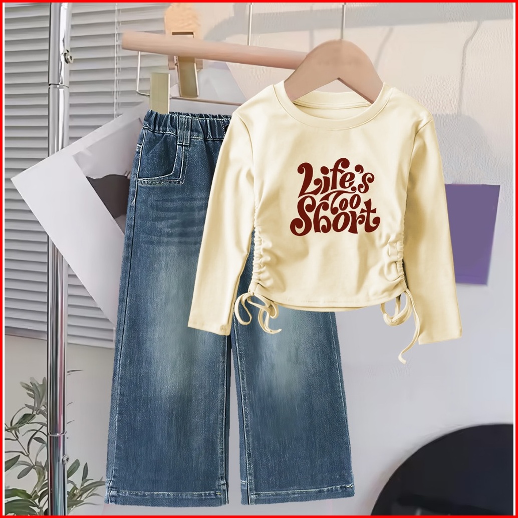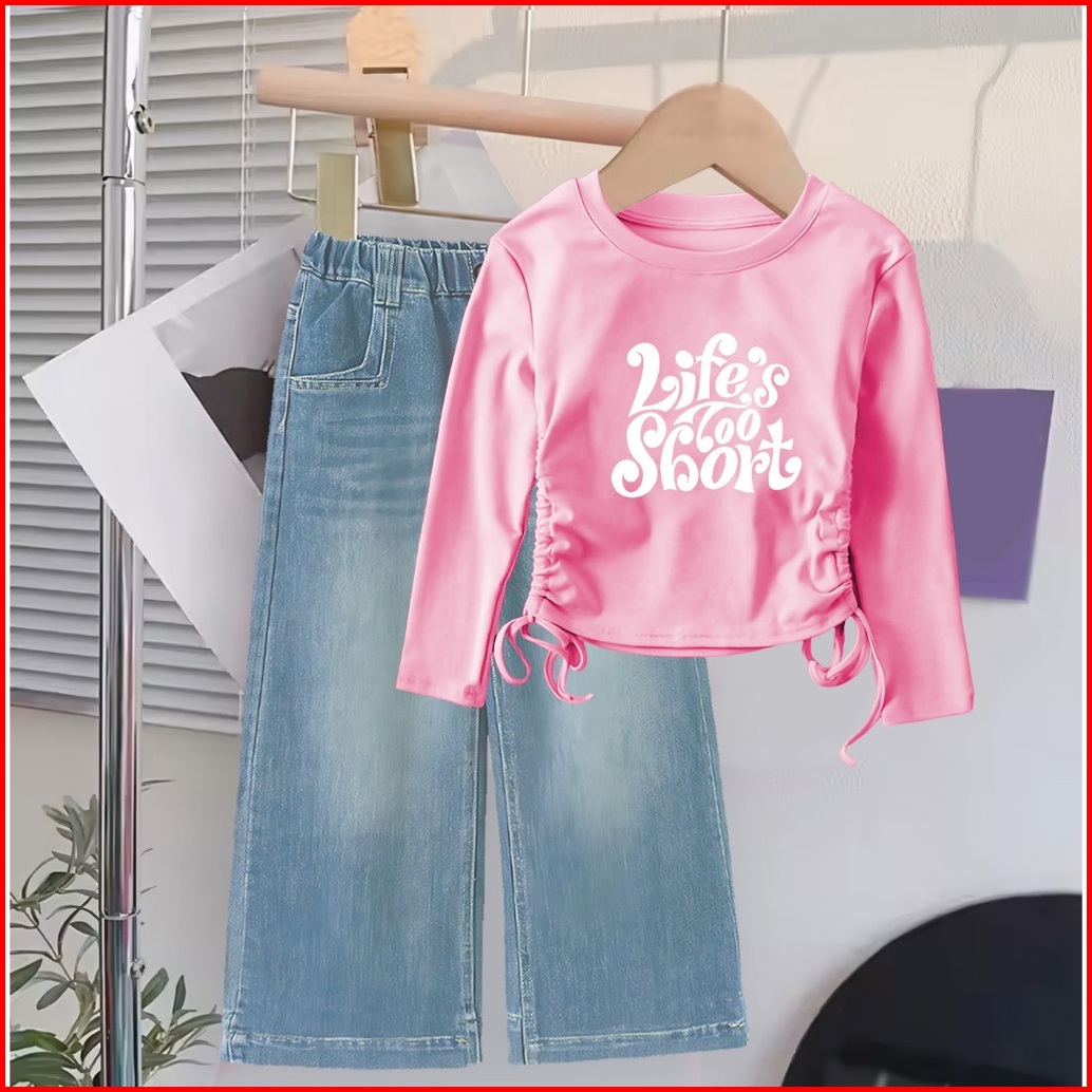 Setelan Baju Crop Panjang Celana Jeans Anak Cewek Usia 1 2 3 4 5 6 7 8 9 10 11 12 Tahun