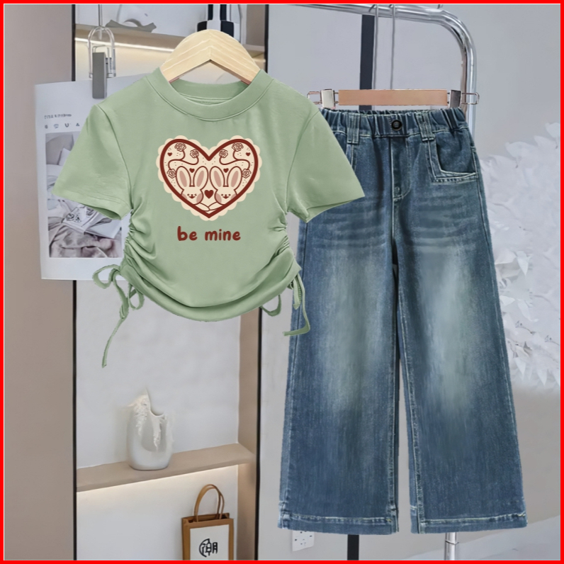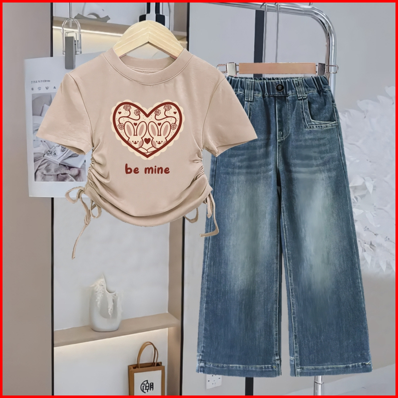 Baju Setelan Anak Perempuan Model Serut Celana Kulot Jeans Usai 1 - 12 Tahun