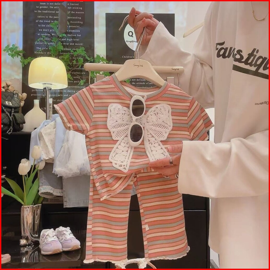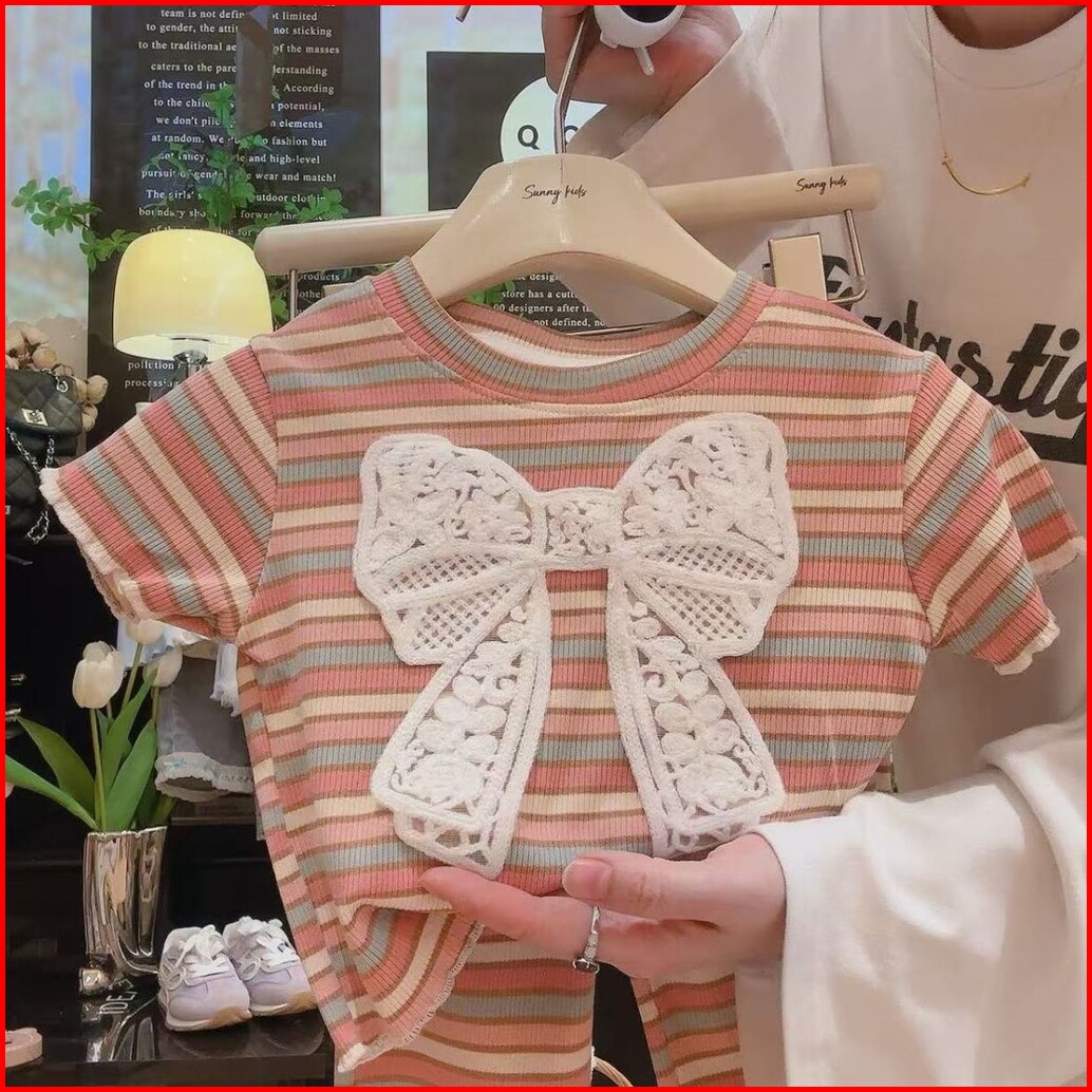 Setelan Anak Perempuan Cila One Set Pita 3d Set Harian Pergi Kekinian