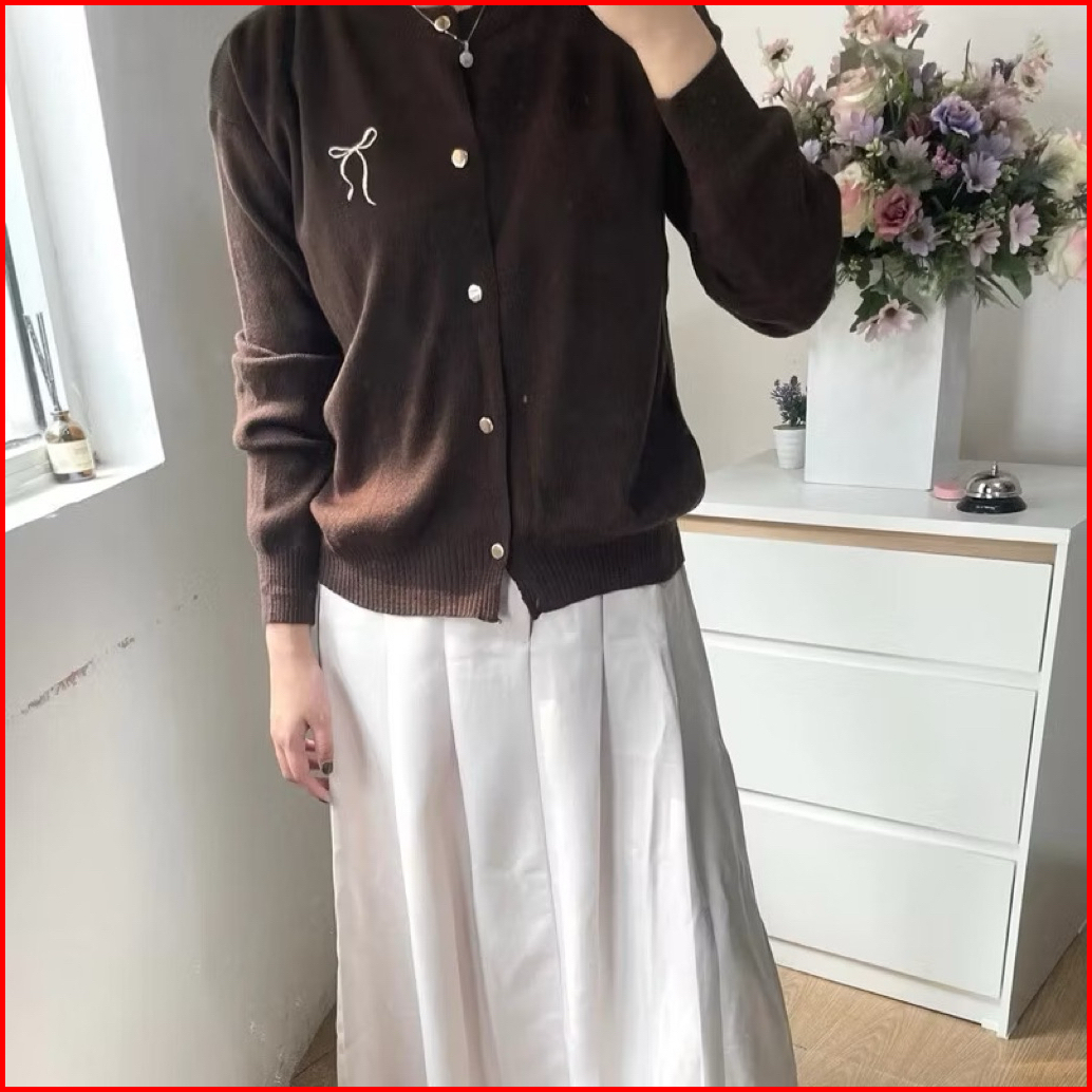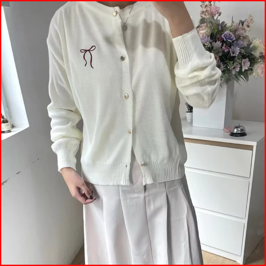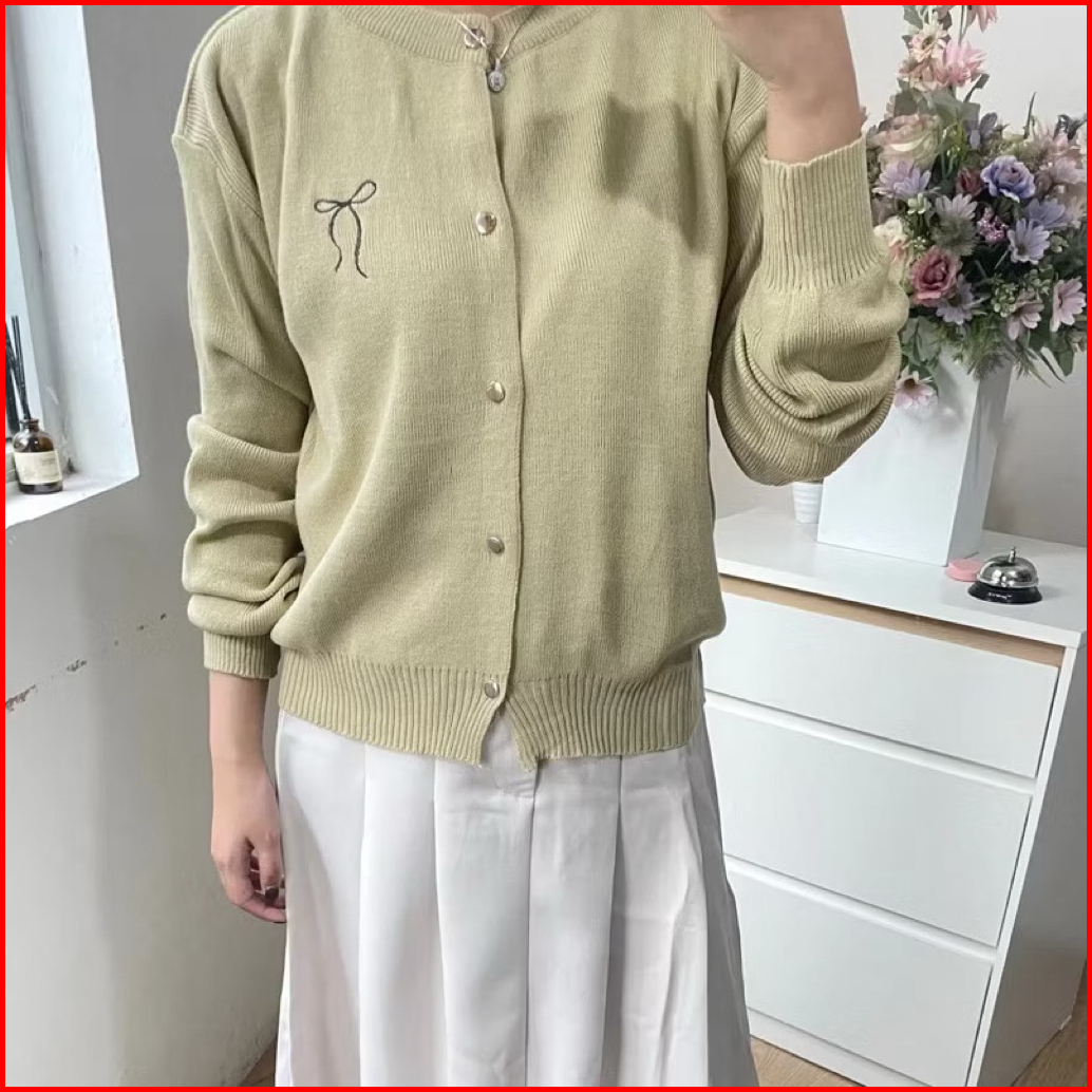 Cardigan Rajut Naomi Pita Korean Style - Cardigan Pita Polos - Cardigan Ribbon Coquette