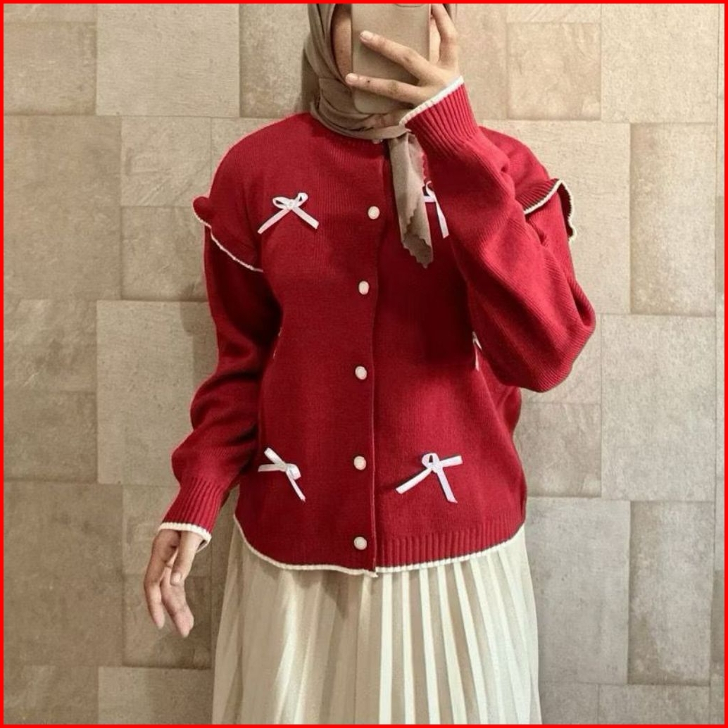 Cardi Poppy Korean Style Tebal Rajut Pita Wanita Cardigan Rajut Poppy Knit Cardy Rajut Pita Korean Style Poppy Cardigan