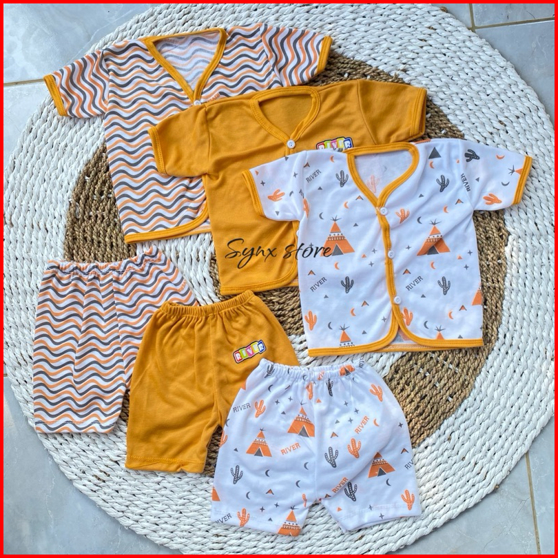 3 Set 6 Pcs Baju Bayi Setelan Lengan Pendek Terbaru Usia Bayi Baru Lahir 0-3 Bulan
