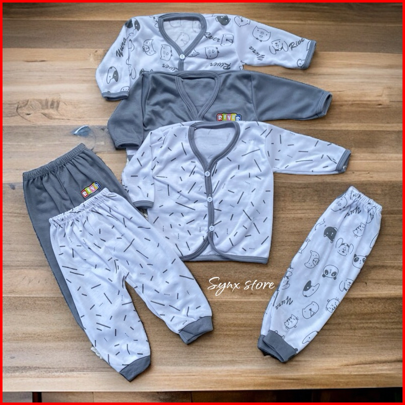 3 Set 6 Pcs Baju Celana Seri Lengan Panjang Baju Bayi Newborn Untuk Usia 0-3 Bulan Terbaru