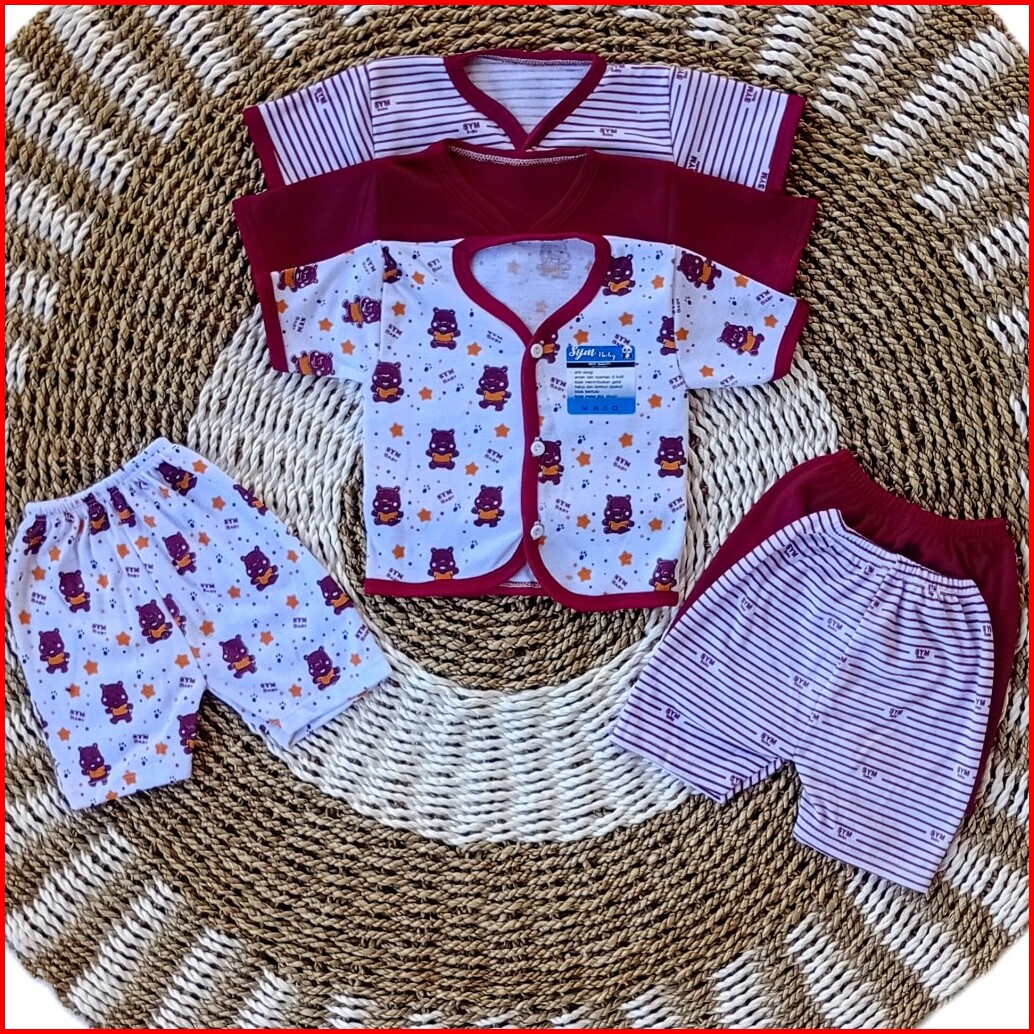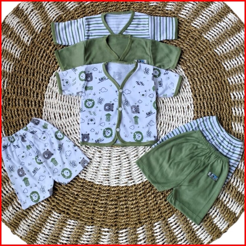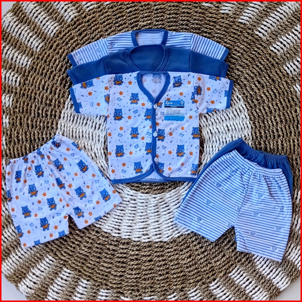 Promo Isi 6 Pcs 3 Stel Baju Bayi Lengan Pendek Celana Pendek Newborn Stelan Pendek Usia 0-3 Bulan