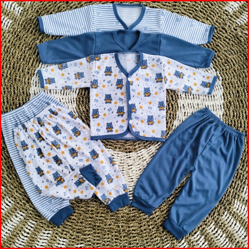 3 Stel Stelan Baju Bayi Newborn Tangan Panjang Seri Navy Usia 0-3 Bulan