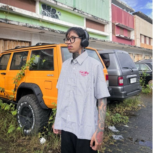 Ealo Shirt | Kemeja Pendek | Boxy | Stripe Black.. | Essential