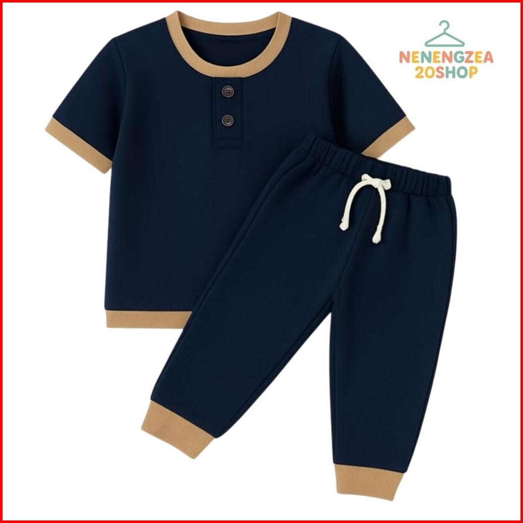 Baju Tidur Kiano Anak Motif Setrif Polos Celana Panjang Usia 2-6 Tahun