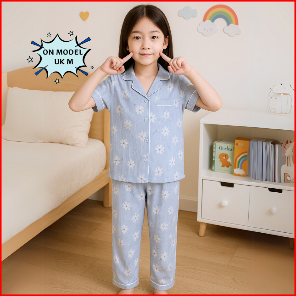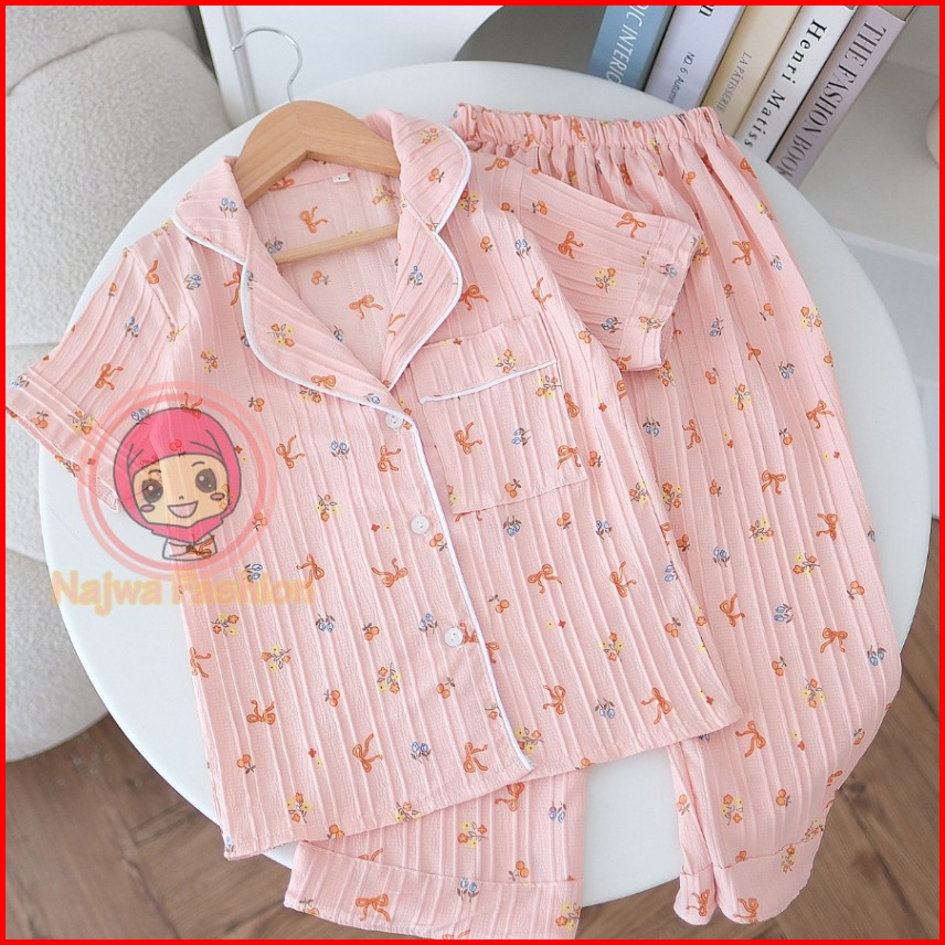 Najwa - Ready Stock Setelan Piyama Anak Premium Cotton Motif Sunday Terlaris Fashion Oneset Baju Tidur Anak Terbaru