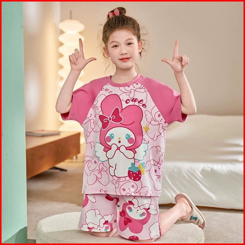 Setelan Santai Baju Lengan Pendek Anak Cewek Girls Size S M L Xl Xxl