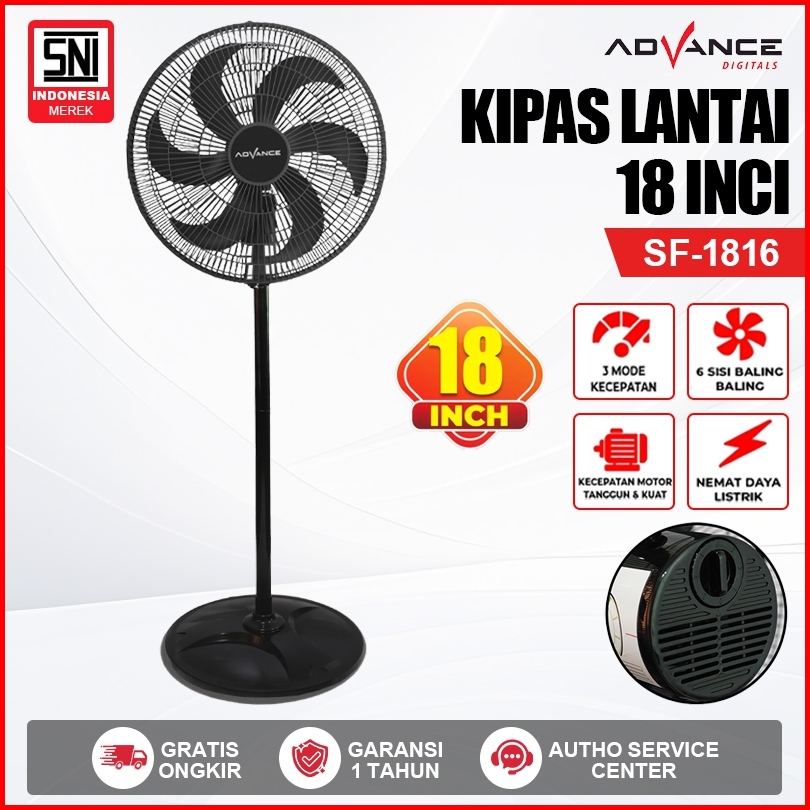 Advance 18inch 80watt Sf-1816 Kipas Angin Berdiri 3 Speed Hembusan Angin Kencang Stand Fan