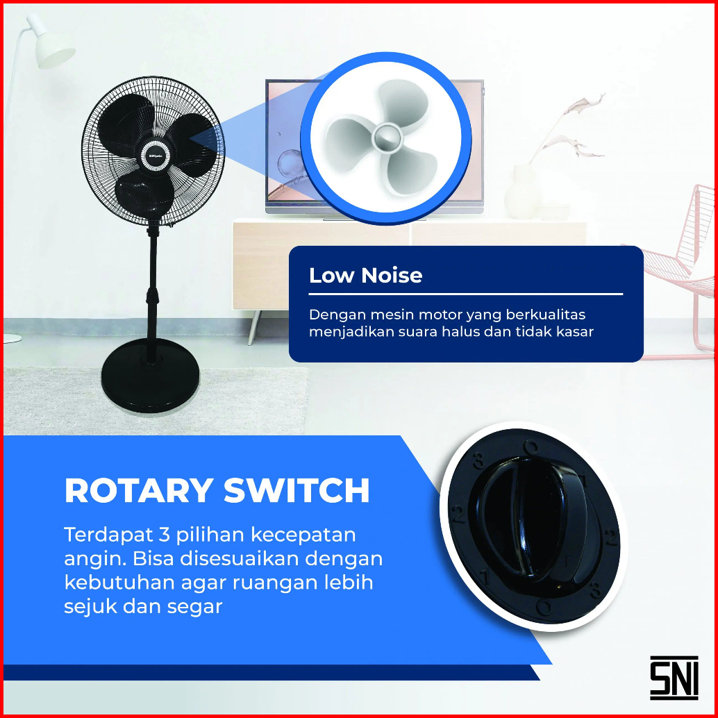 Kipas Angin Miyako Kas1607gb Stand Fan 16in Kaki Bulat 50w Design Minimalis