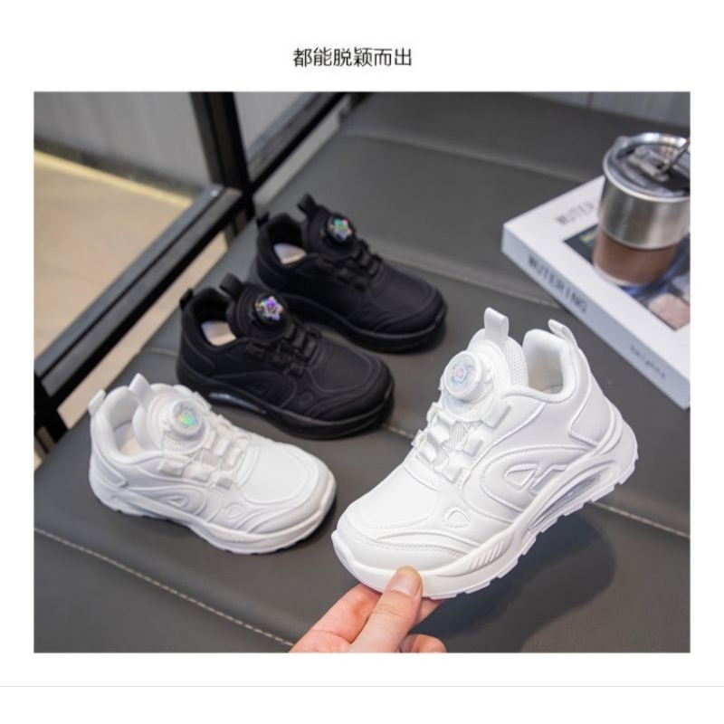 [Mommyhoky] Sepatu anak Tali putar import Sepatu sekolah anak perempuan dan laki-laki full black sepatu anak tk dan sd Sneakers anak full white import