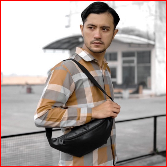 Harloth - Drago Tas Pinggang Pria Kulit Sintetis Waistbag Pria Kulit Black