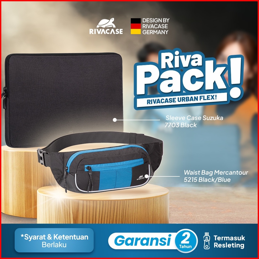 Rivacase Paket Urban Flex Waist Bag Mercantour 5215 Blue Sleeve Case Suzuka 7703 Black