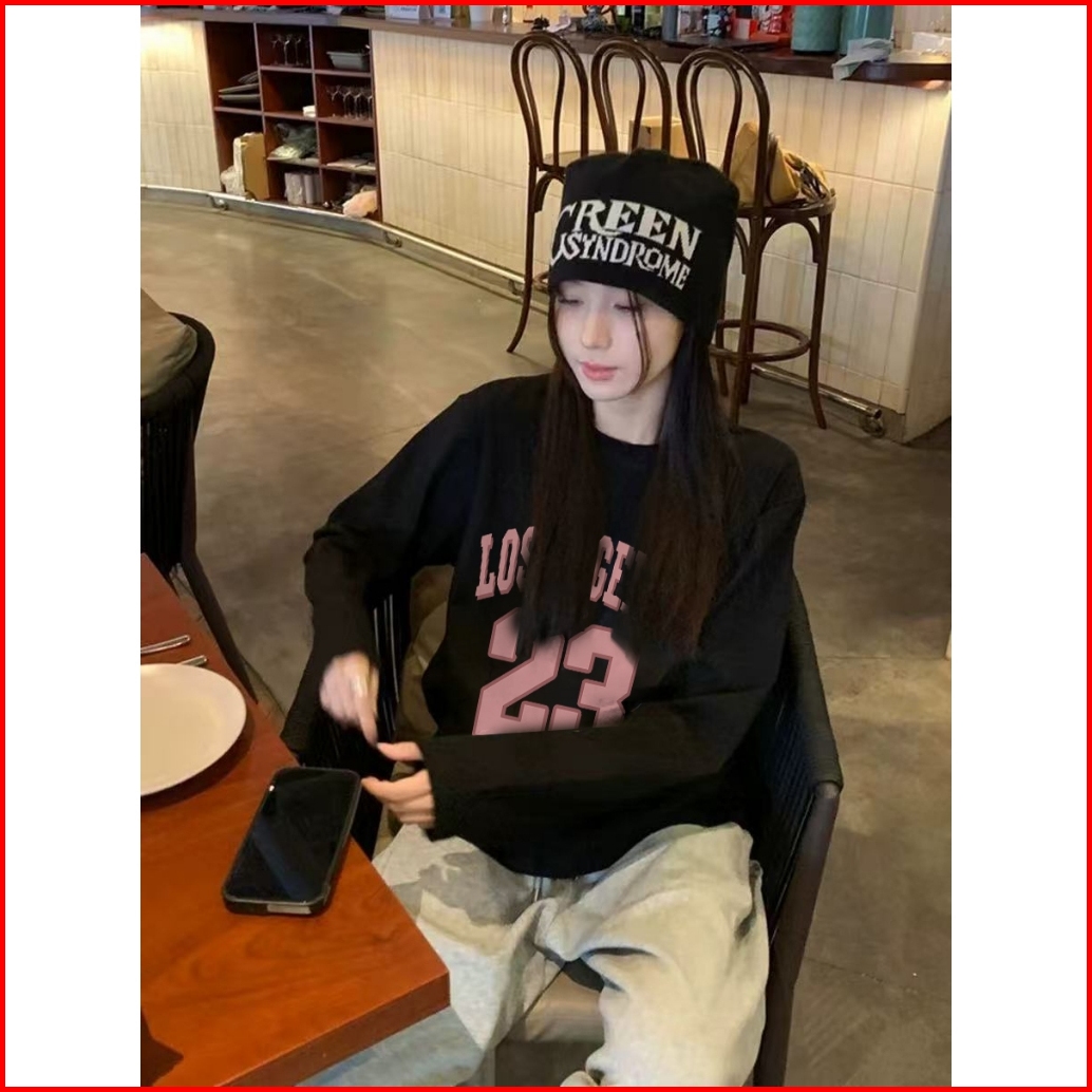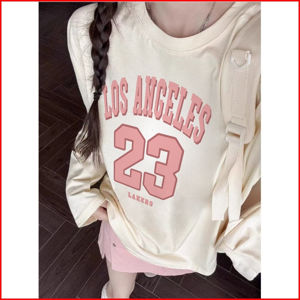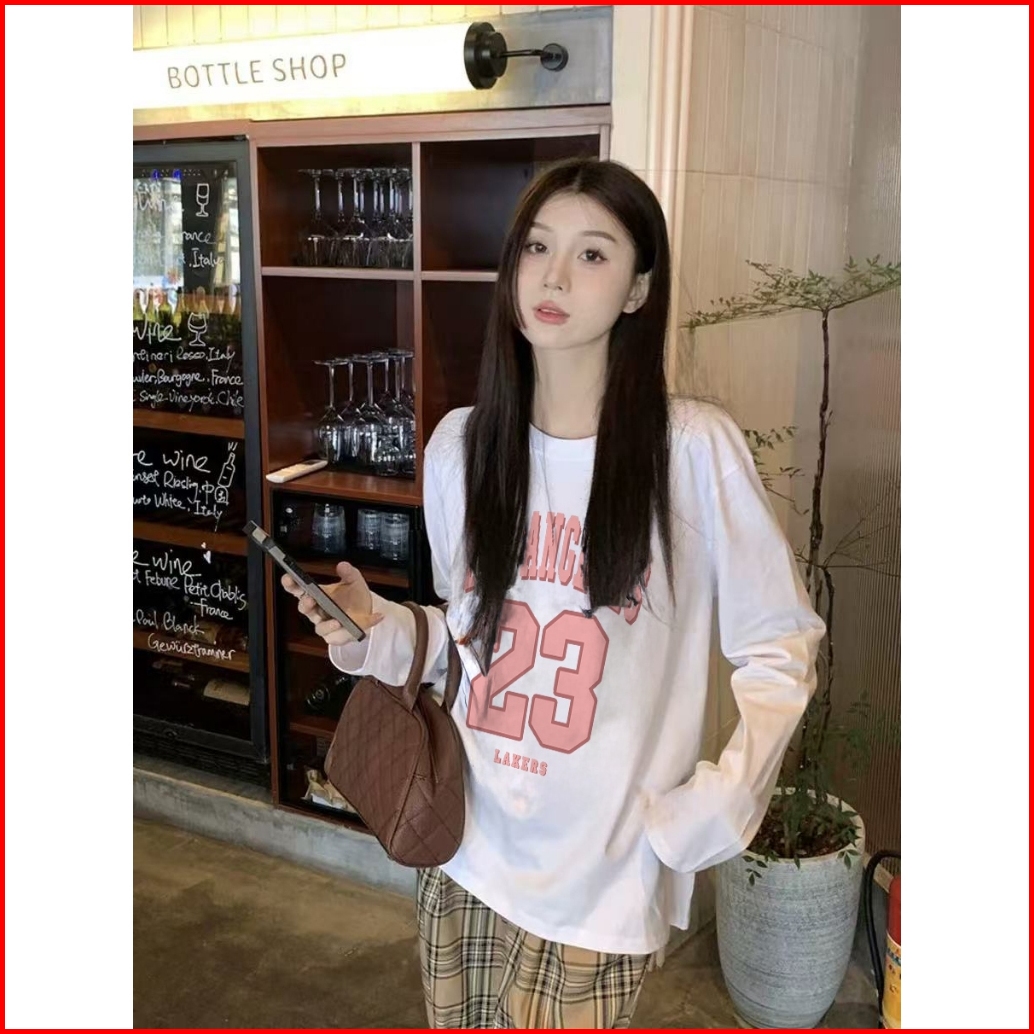 Demero Atasan Kaos Wanita Oversize Lengan Panjang Korean Style Cetakan Mode Baju Kaos Polos Cotton Combed Premium Terbar