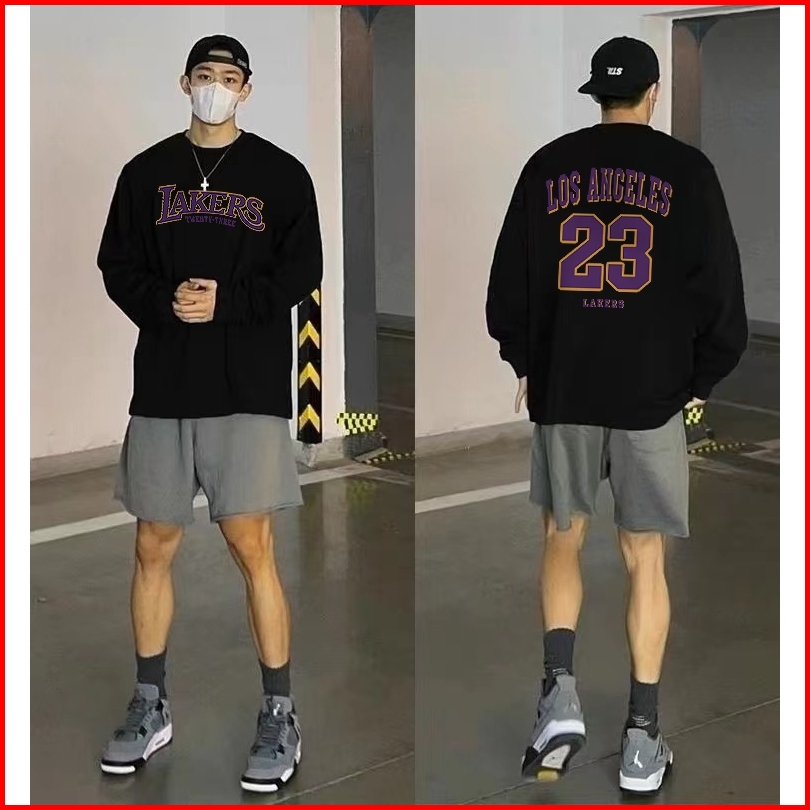 Renelle Kaos Lengan Panjang Pria Distro Original 100 Tebal Motif Korean Style Pria Long Sleeve Crewneck Tshirt Oversize