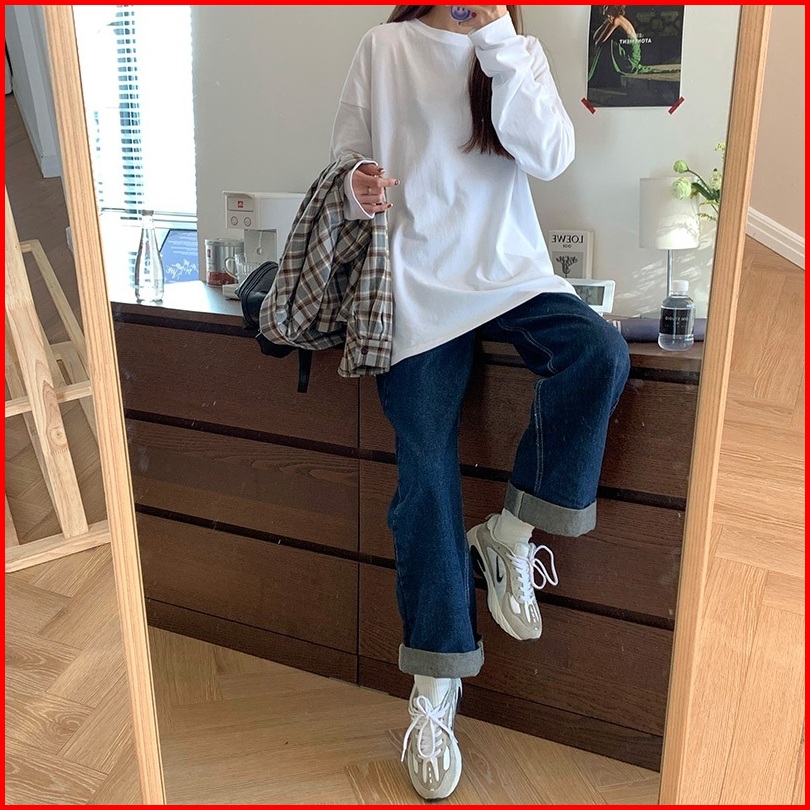 The Monseur Gallery Baju Kaos Wanita Lengan Panjang Kaos Oversize Wanita Baju Atasan Wanita Blue Graffiti Kaos Wanita Pu