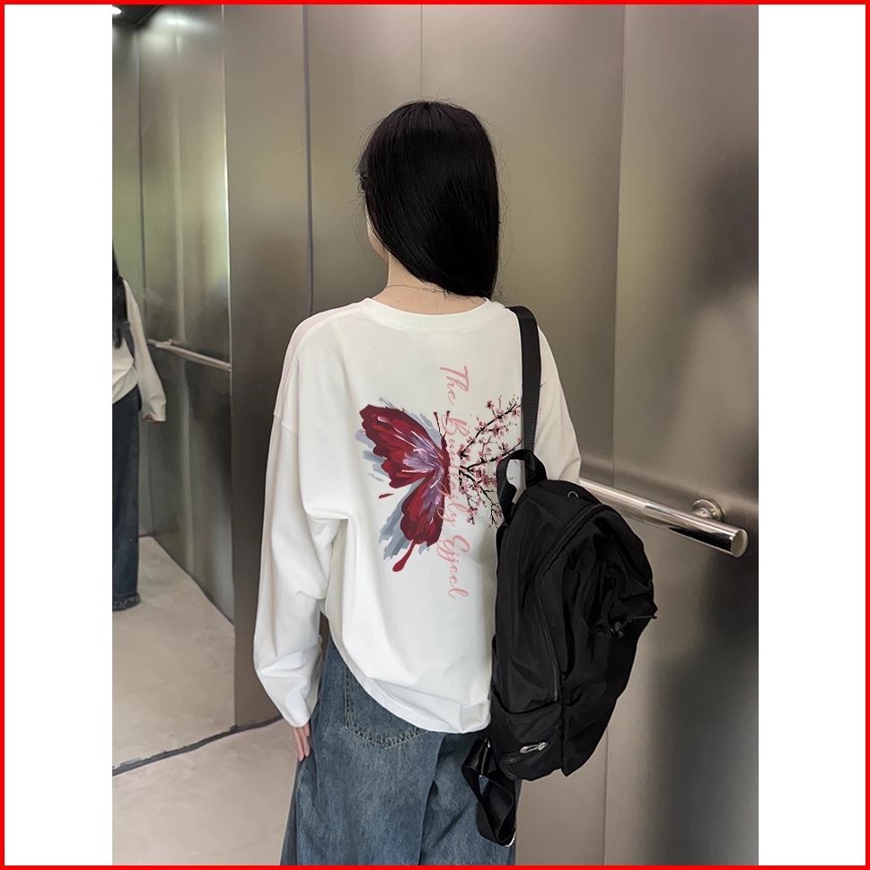 The Monseur Gallery Baju Kaos Wanita Lengan Panjang Kaos Oversize Wanita Baju Atasan Wanita Flowers Butterfly Kaos Wanit