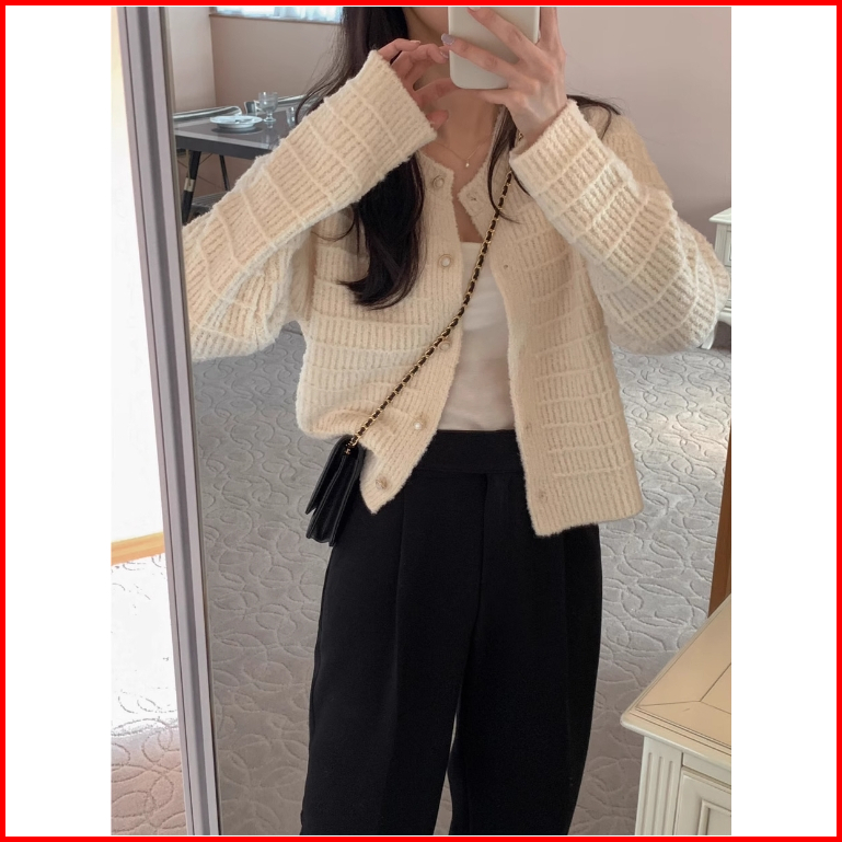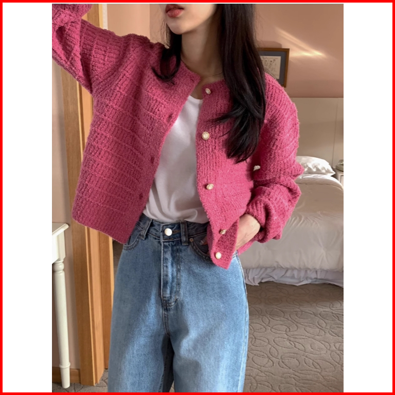 The Monseur Gallery Cardigan Lengan Panjang Retro Gaya Korea Kardigan Rajutan Lengan Panjang Atasan Crop Berkerah V
