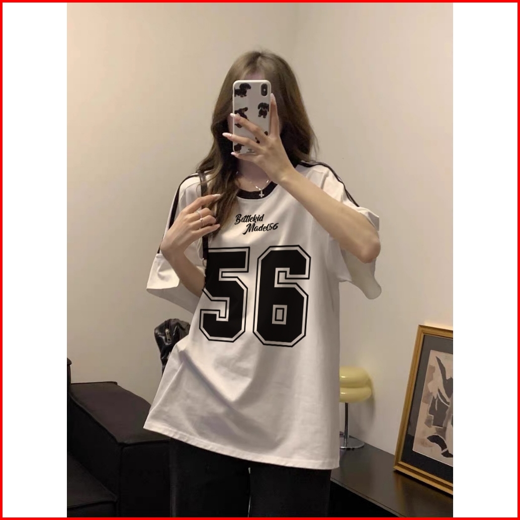 The Monseur Gallery Tali Bahu T-shirt Oversize Retro Number 56 Kaos Wanita Tali Bahu Hitam