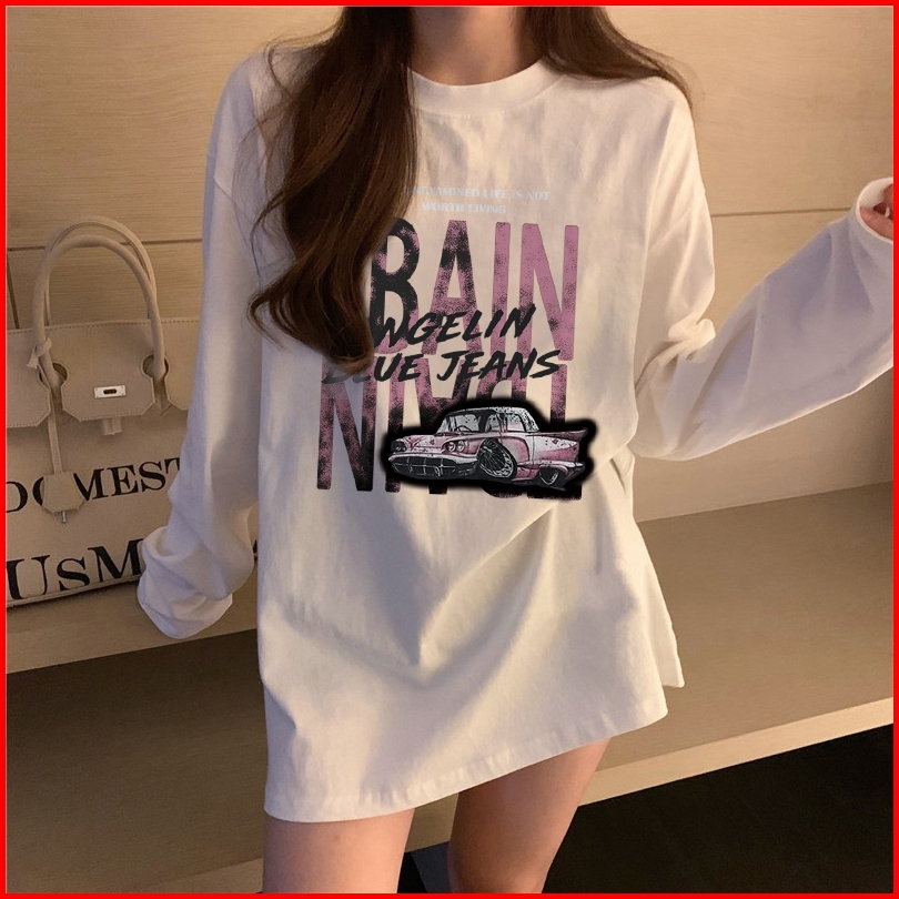 The Monseur Gallery Baju Kaos Wanita Lengan Panjang Kaos Oversize Wanita Baju Atasan Wanita Terbaru Retro Car Kaos Wanit