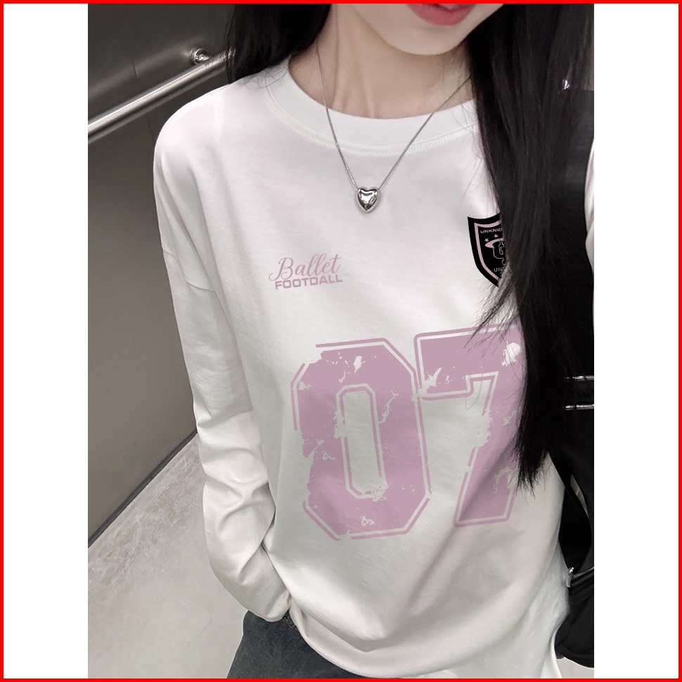 The Monseur Gallery Baju Kaos Wanita Lengan Panjang Kaos Oversize Wanita Baju Atasan Wanita Pink Number 07 Kaos Wanita H