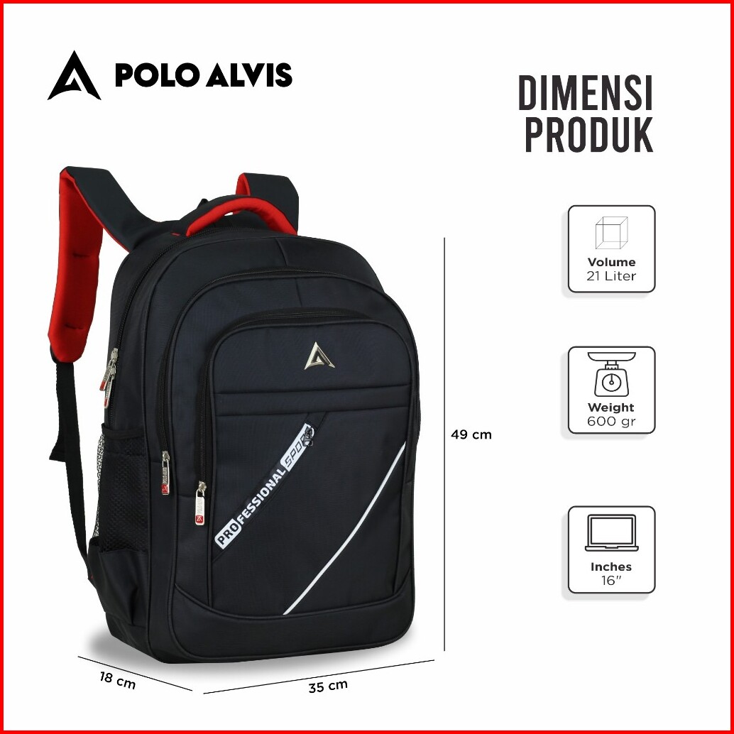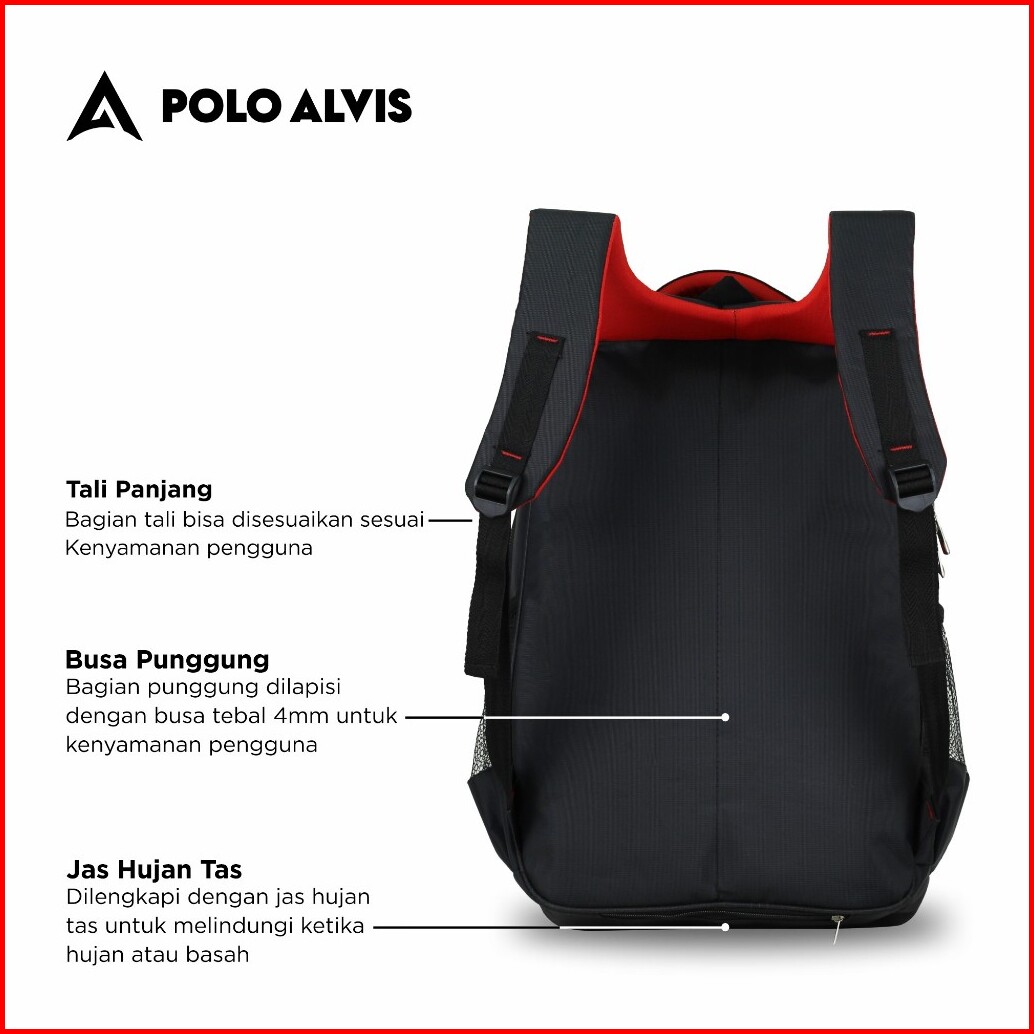 Polo Alvis - Pro Elevate Tas Sekolah Cowok Keren Smp Sma Ransel Gendong Microluis Bonus Rain Cover