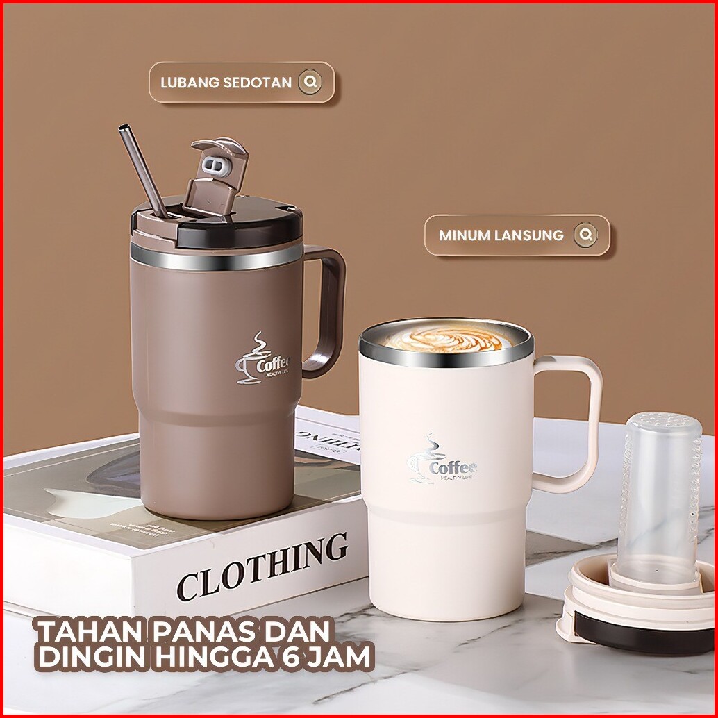 Paket Ngopi Asik - Tumbler Stainless 600 Ml Gelas Stainless 450 Ml