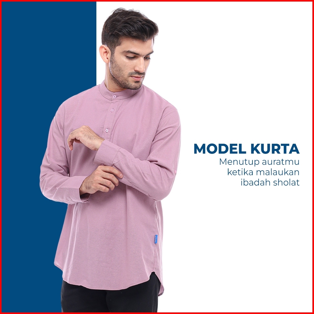 Baju Koko Kurta Pria Bahan Linen Tangan Panjang Warna Irish Atau Lilac Kemko Atva