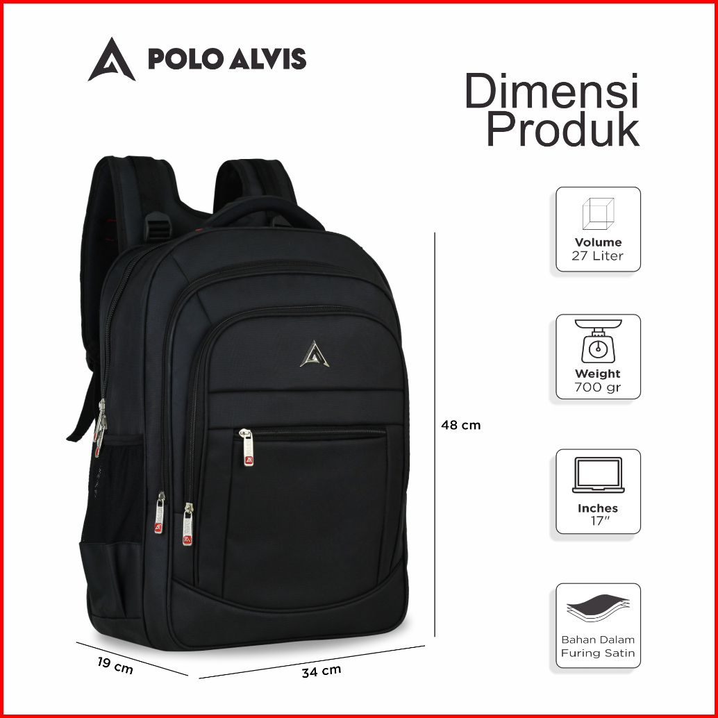 Polo Alvis - Pro Grands Tas Ransel Pria Polo Original Hitam Luas Backpack Laptop 17 Bonus Rain Cover