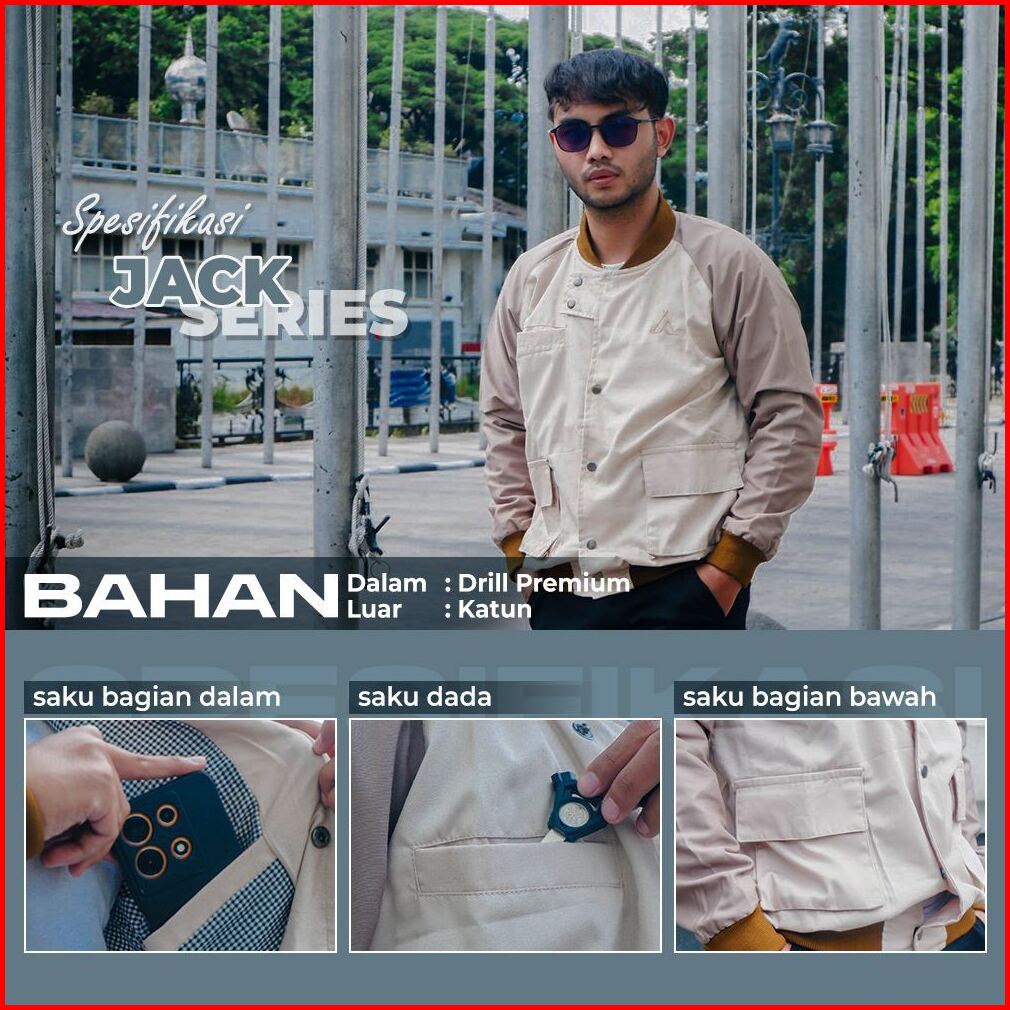 - Jaket Varsity Pria Canvas - Jake Series Olive