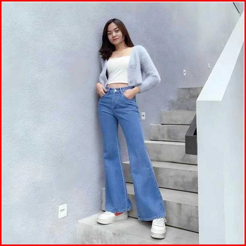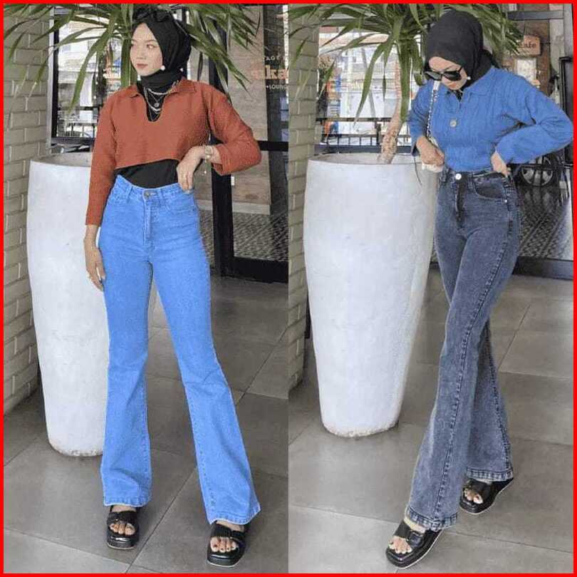 Celana Cutbray Wanita - Celana Cutbray Hightwaist Jeans Streach Kekinian - Cutbray Flared - Streetch Premium