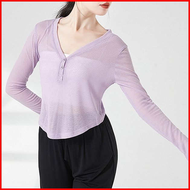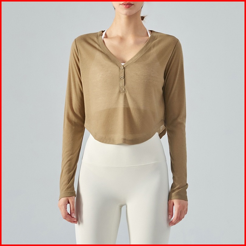 Timetosport Baju Olahraga Wanita Crop Lengan Panjang Kancing Gym Fitness Zumba 1188