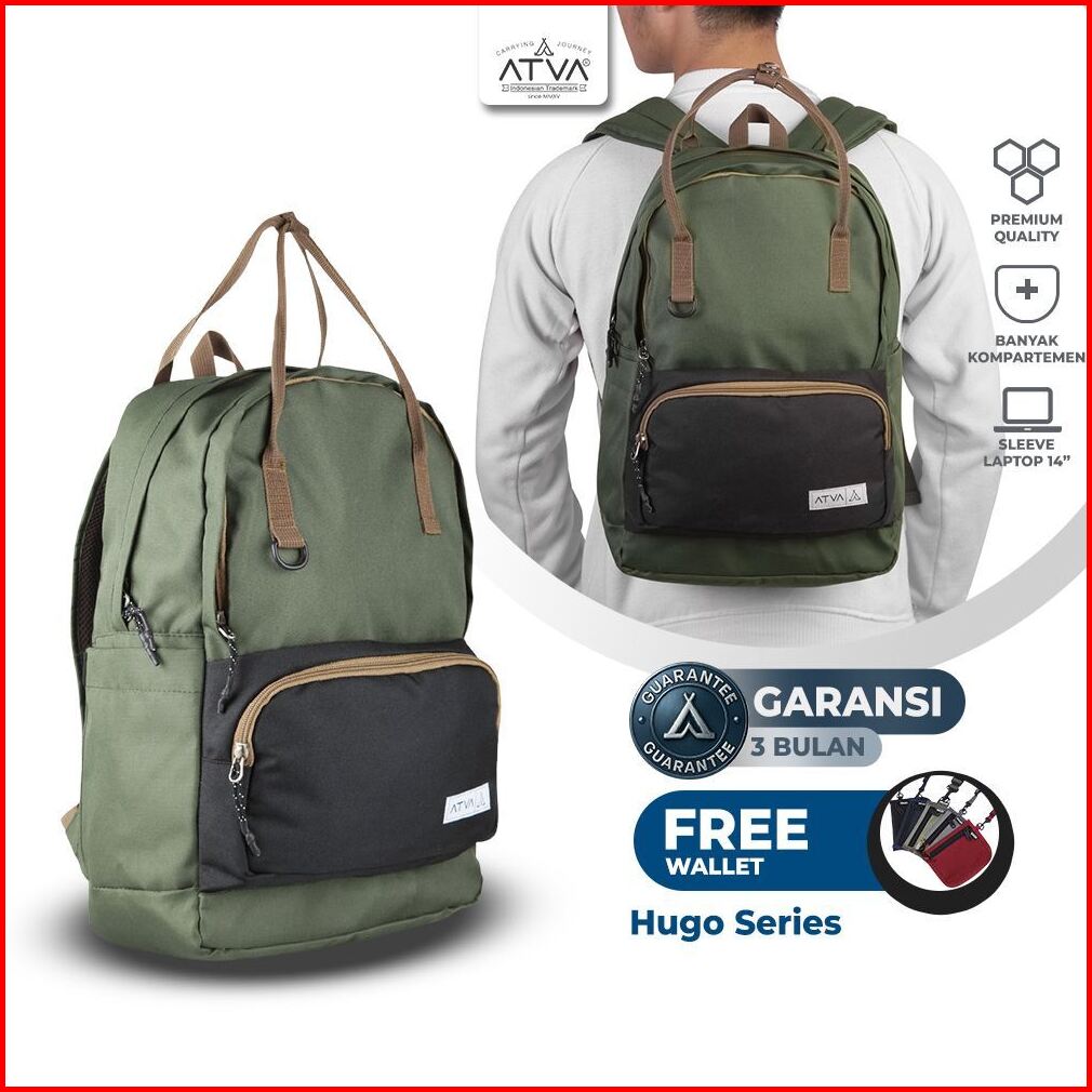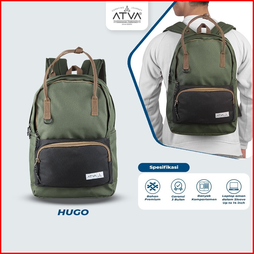 Atva Tas Ransel Pria Wanita Daily Backpack Laptop 14 Inch Tas Sekolah Kuliah Cewek Cowok Hugo Series Olive Black