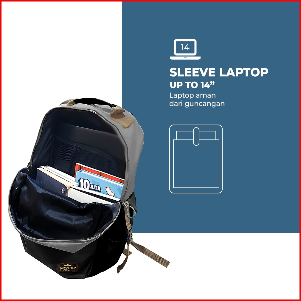 Atva Wanderer Tas Ransel Pria Daily Backpack Laptop 14 Inch Tas Sekolah Kuliah Sherpa Series Grey Black