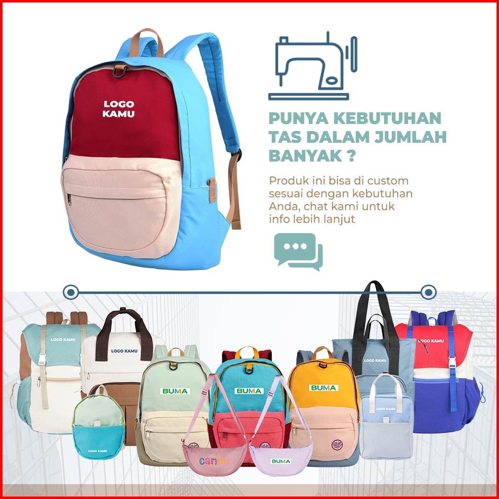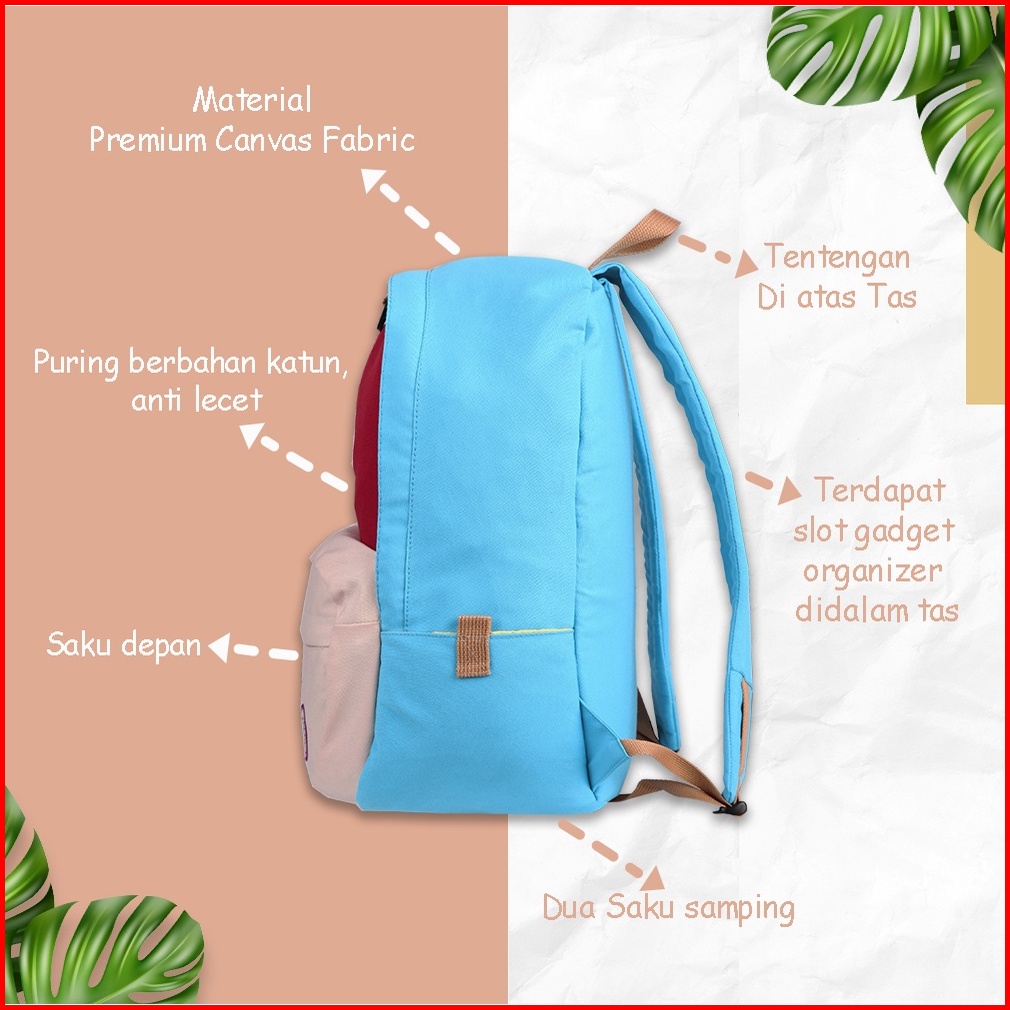 Tas Ransel Harian Daily Backpack Kanvas Dari Girl Station Freya Warna Red Blue