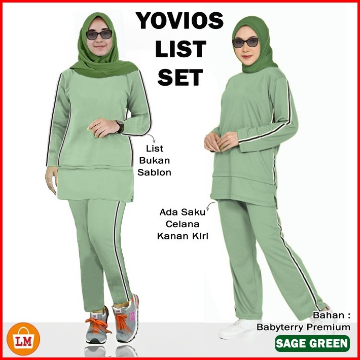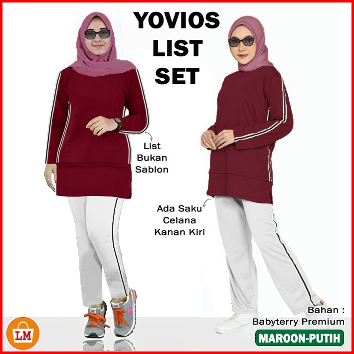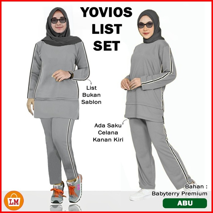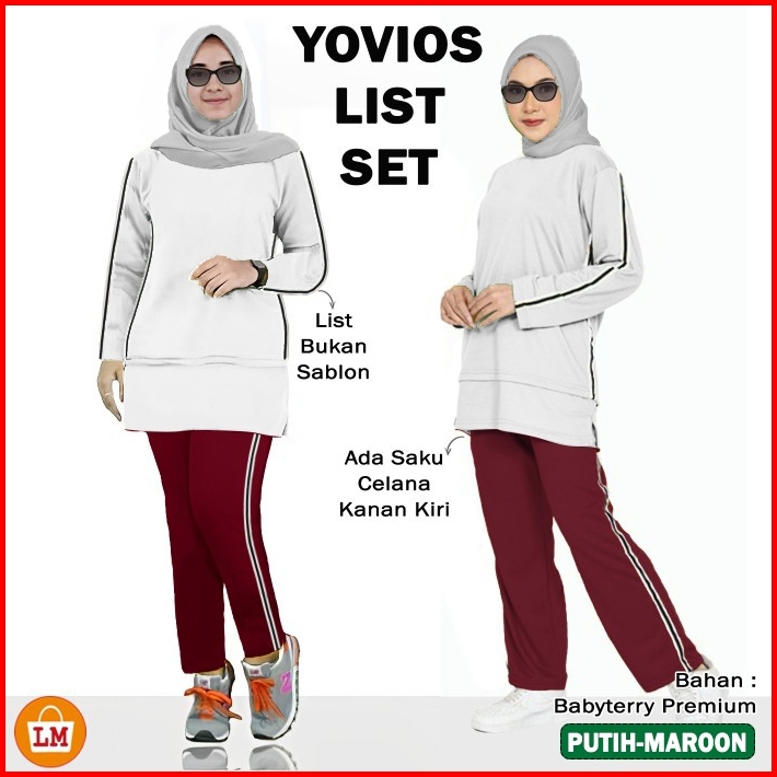 Setelan Training Olahraga Wanita Muslimah Yovios List Set Kaos Babyterry Lengan Panjang L Xl Xxl Xxxl Lms 35457