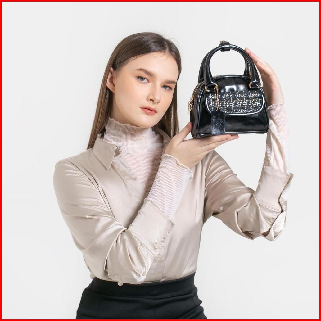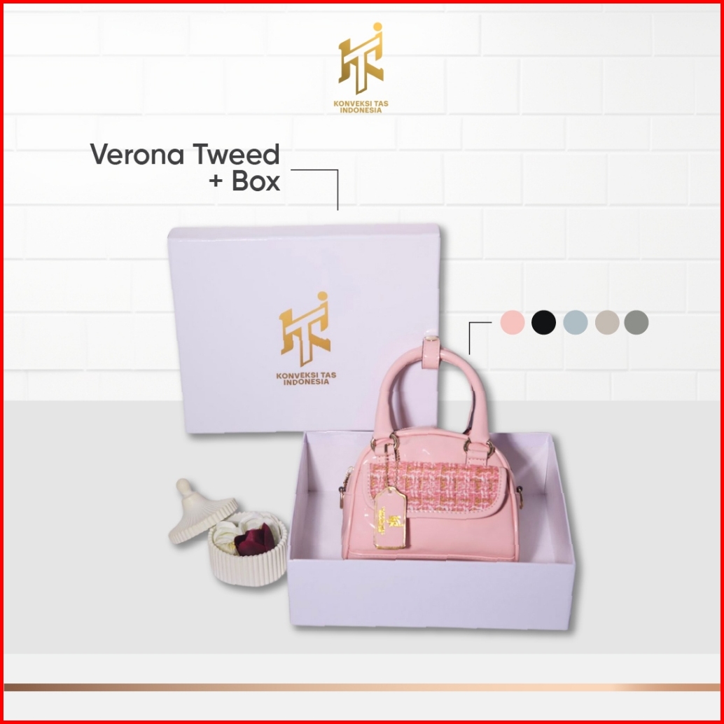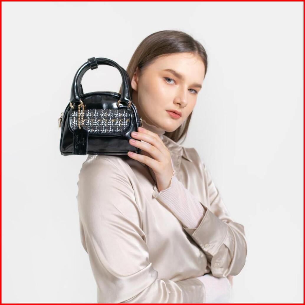 Kti Tas Tweed Kulit Pu Verona Model Selempang Bold Chic Ringan Adjustable