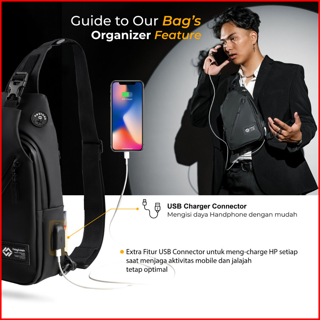 Heylook - Sling Bag Pria Triton Tas Selempang Cowok Waist Bag Waterproof Tas Slempang Shoulder Bag Anti Air Crossbody Di