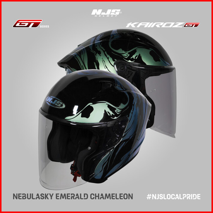 Njs Kairoz Gt Nebulasky Emerald Chameleon - Helm Half Face Free Spoiler Gt - Helm Half Face Kairoz Gt Gt Series Nebula E