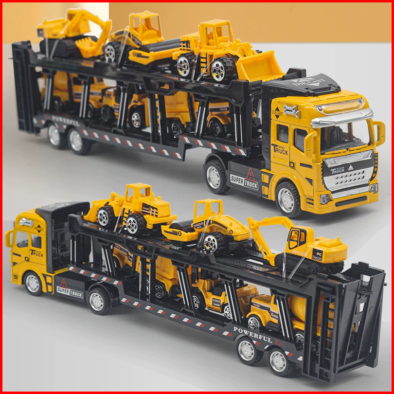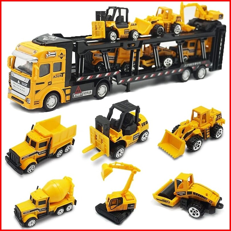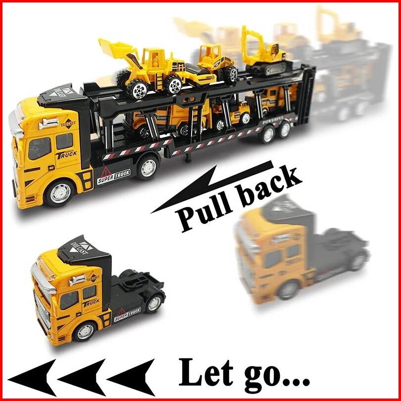 Free 6 Mobil Carpull Back Paduan Kendaraan Truk Container Pengangkut Diecast Metal Car Trucks Mobil Mainan Mobilan Bulld