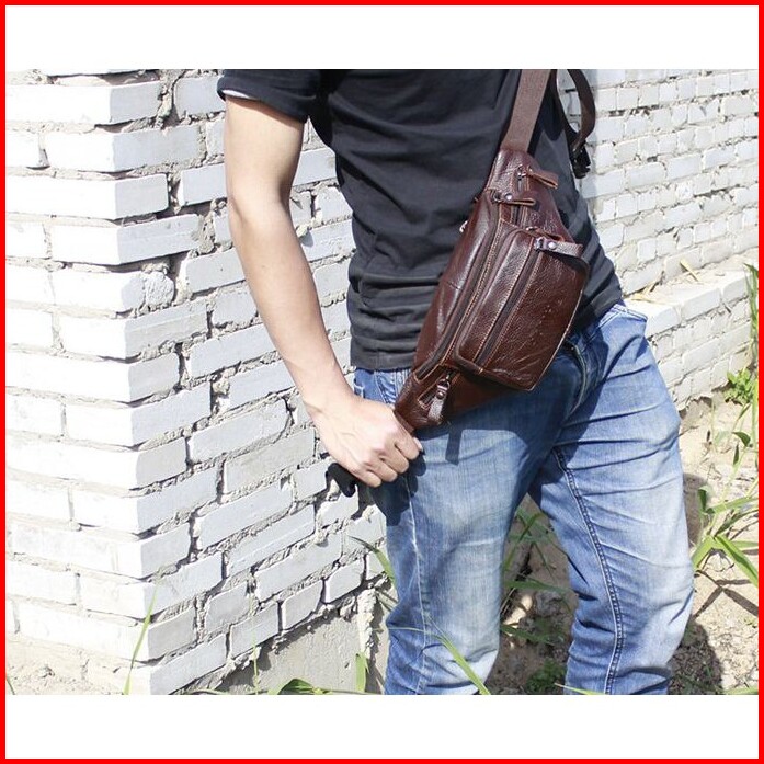 Kulit Sapi Asli Tas Pinggang Waist Bag Pria Import