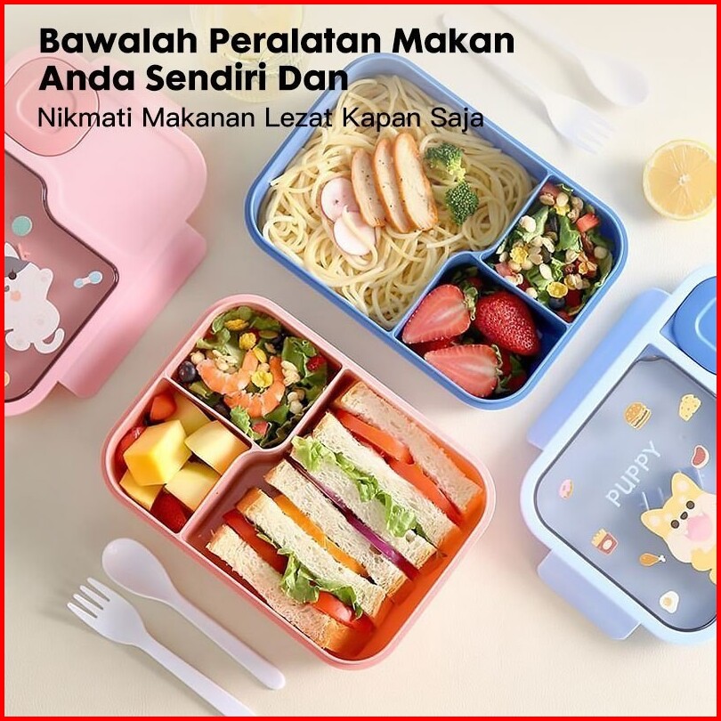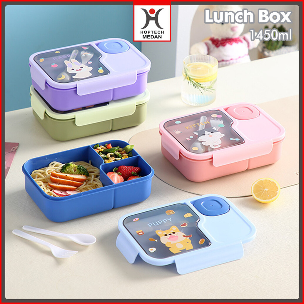 Hoptech - Paket Tempat Makan Anak 1450ml Lunch Box Set 3 Sekat Bpa Free Kotak Bekal Karakter Tas Bekal Medan Ready Stock