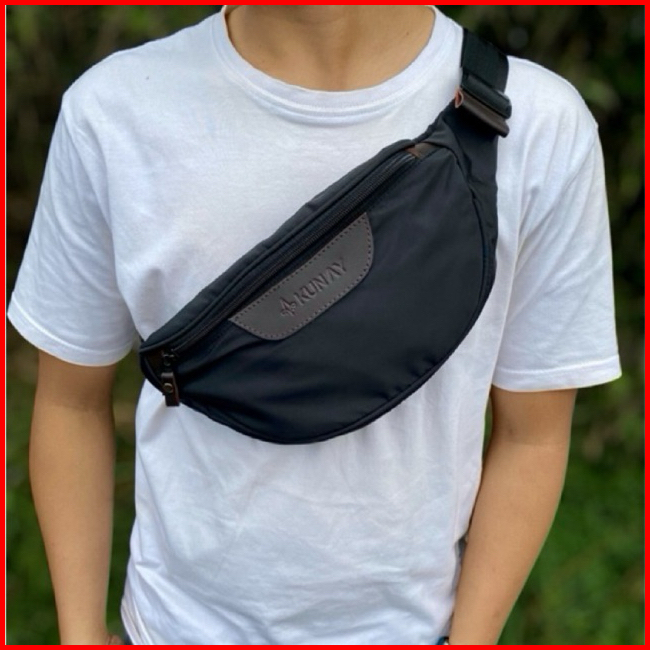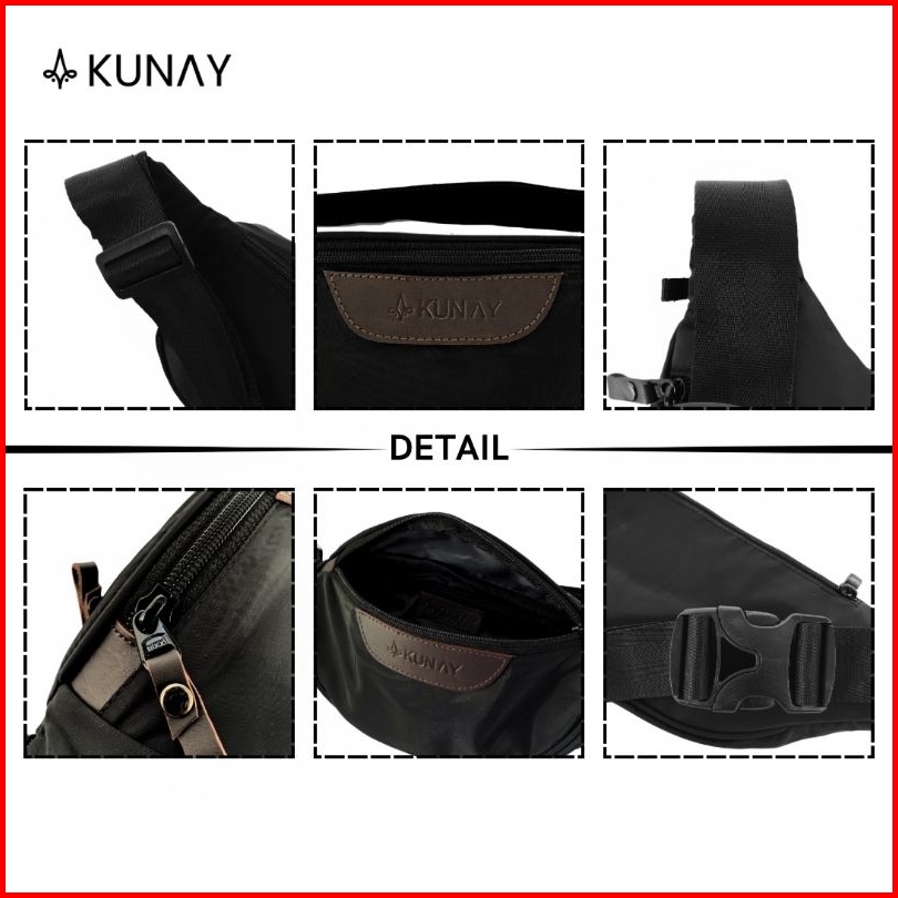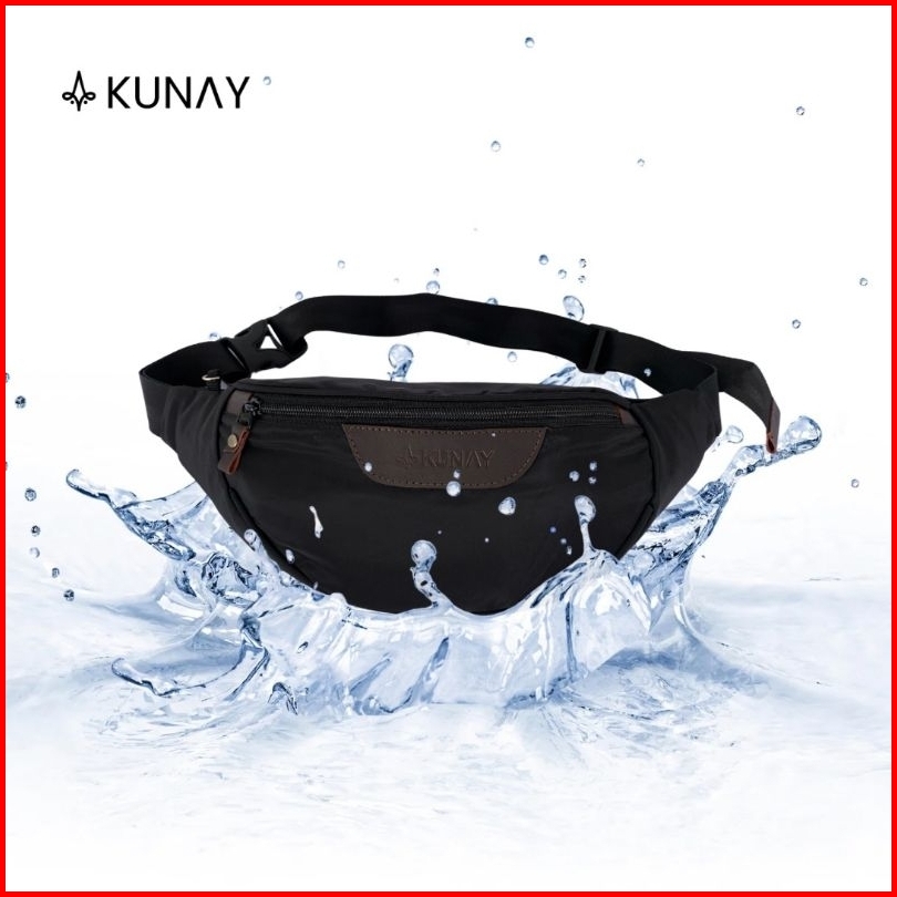 Kunay - Tas Waistbag Hyrus Waterproof Pria Tas Selempang Kombinasi Kulit Pu Anti Air Pinggang Cowok Premium