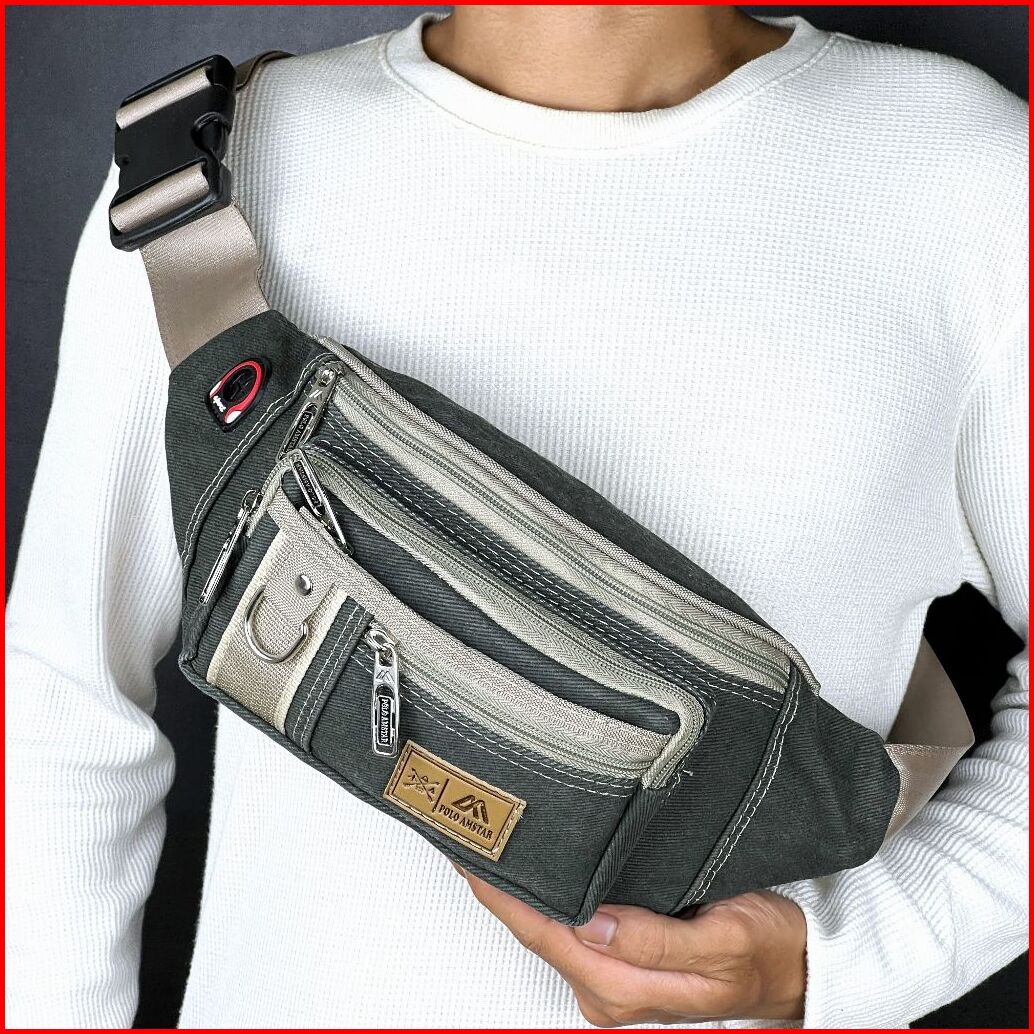 Polo Amstar Canvas Waistbag Tas Selempang Pria Casual Multifungsi Slingbag Kanvas Tas Pinggang Cowok