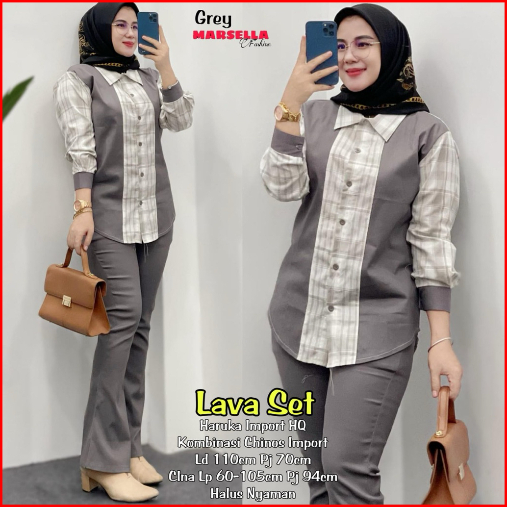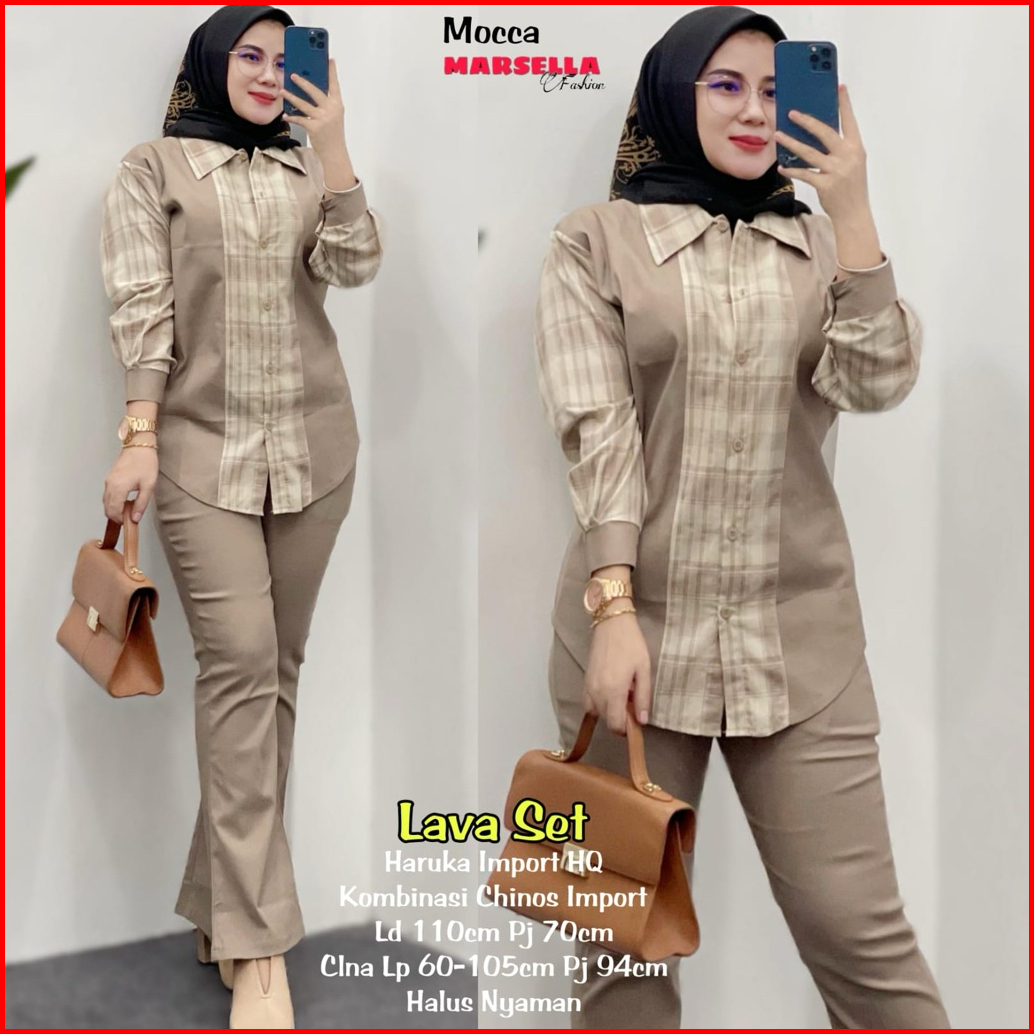 Alda Set Setelan Wanita Atasan Kemeja Katun Import Celana Chinos Premium