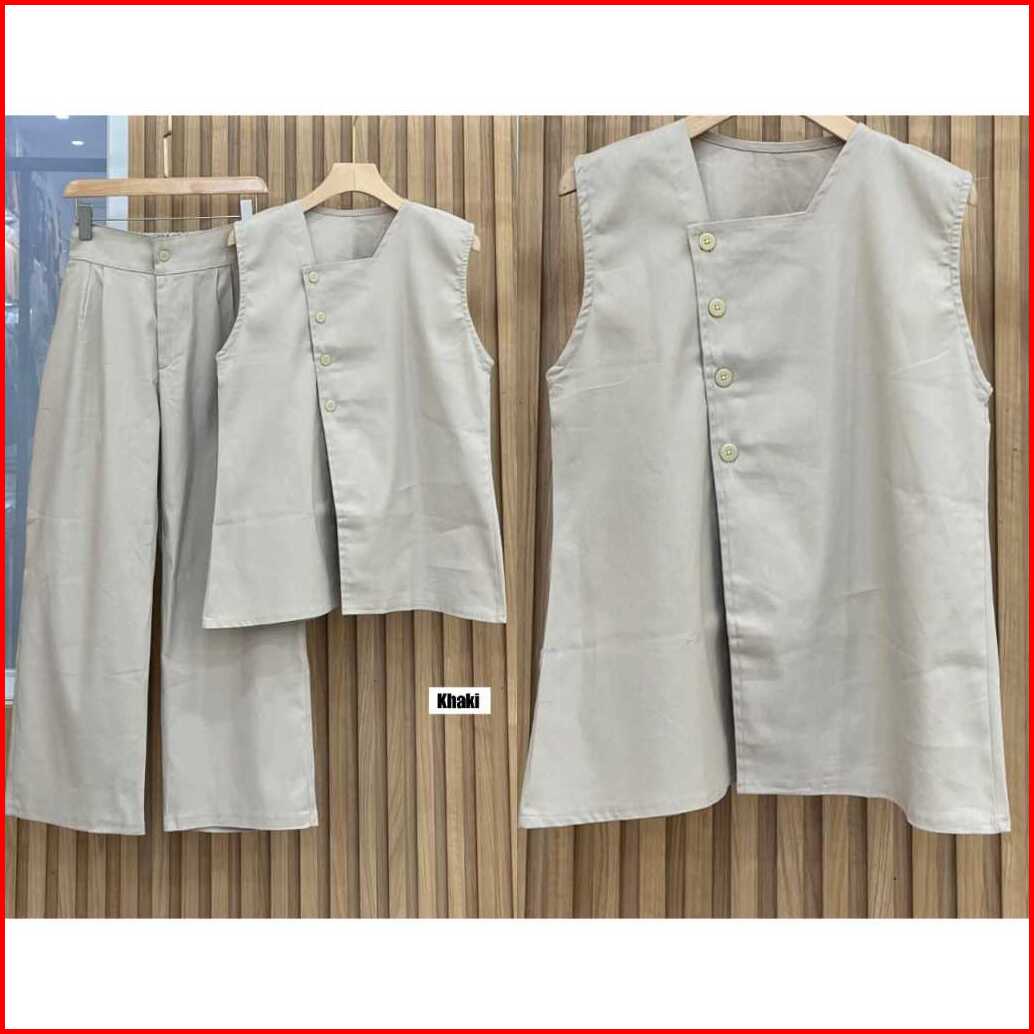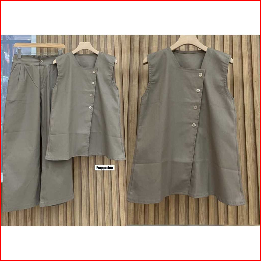 Fisya Fashion Stelan Oneset Vest Wanita Tanpa Inner Bahan Twill Stretch Terbaru Model Kekinian
