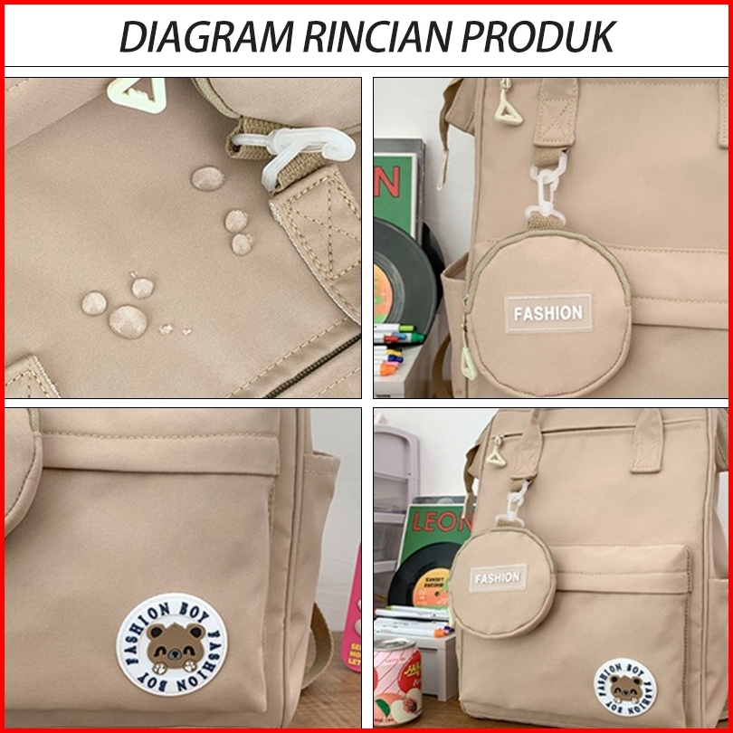 Nine Stars Ransel Waterproof Wanita Kekinian Tas Cewek Korean Style Backpack Sekolah Wanita