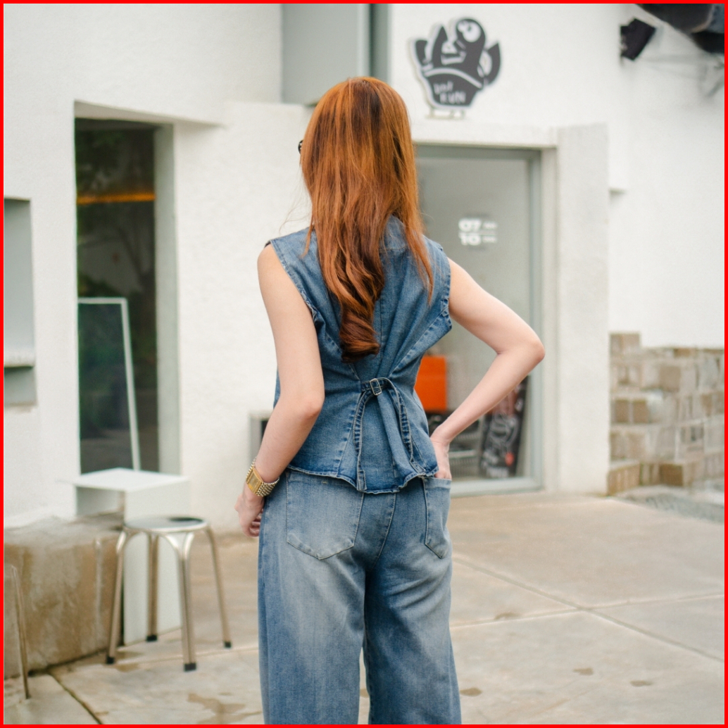Enzy Oneset Jeans - One Set Jeans Wanita - Setelan Wanita Jeans - One Set - Vest Denim Dan Loose Pants