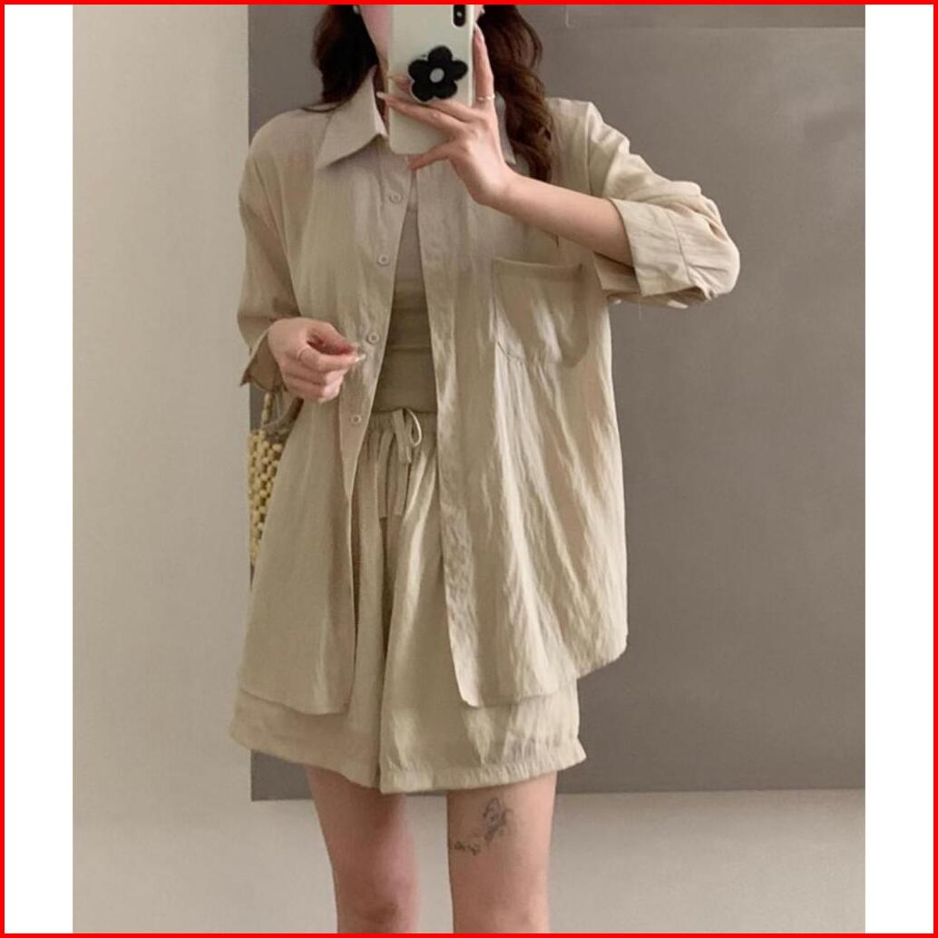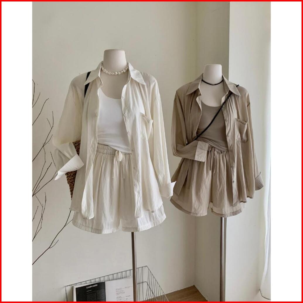 Kiyomi One Set Setelan Pantai Terbaru Setelan Kemeja Panjang One Set Linen Setelan Sexy
